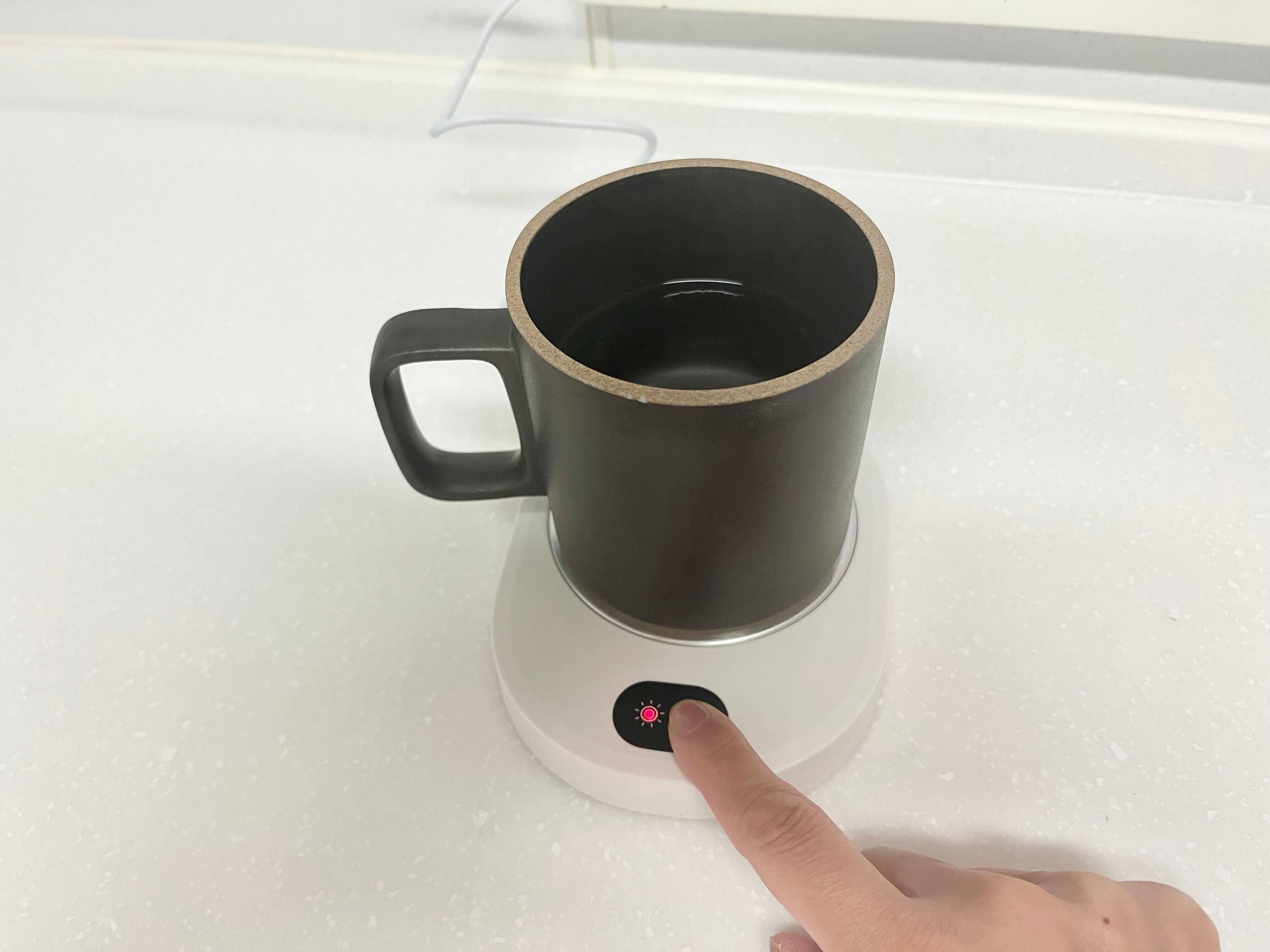 電源ボタンを押してからしばらくするとプレートが温まり、プレートの熱でホットドリンクを保温してくれます。