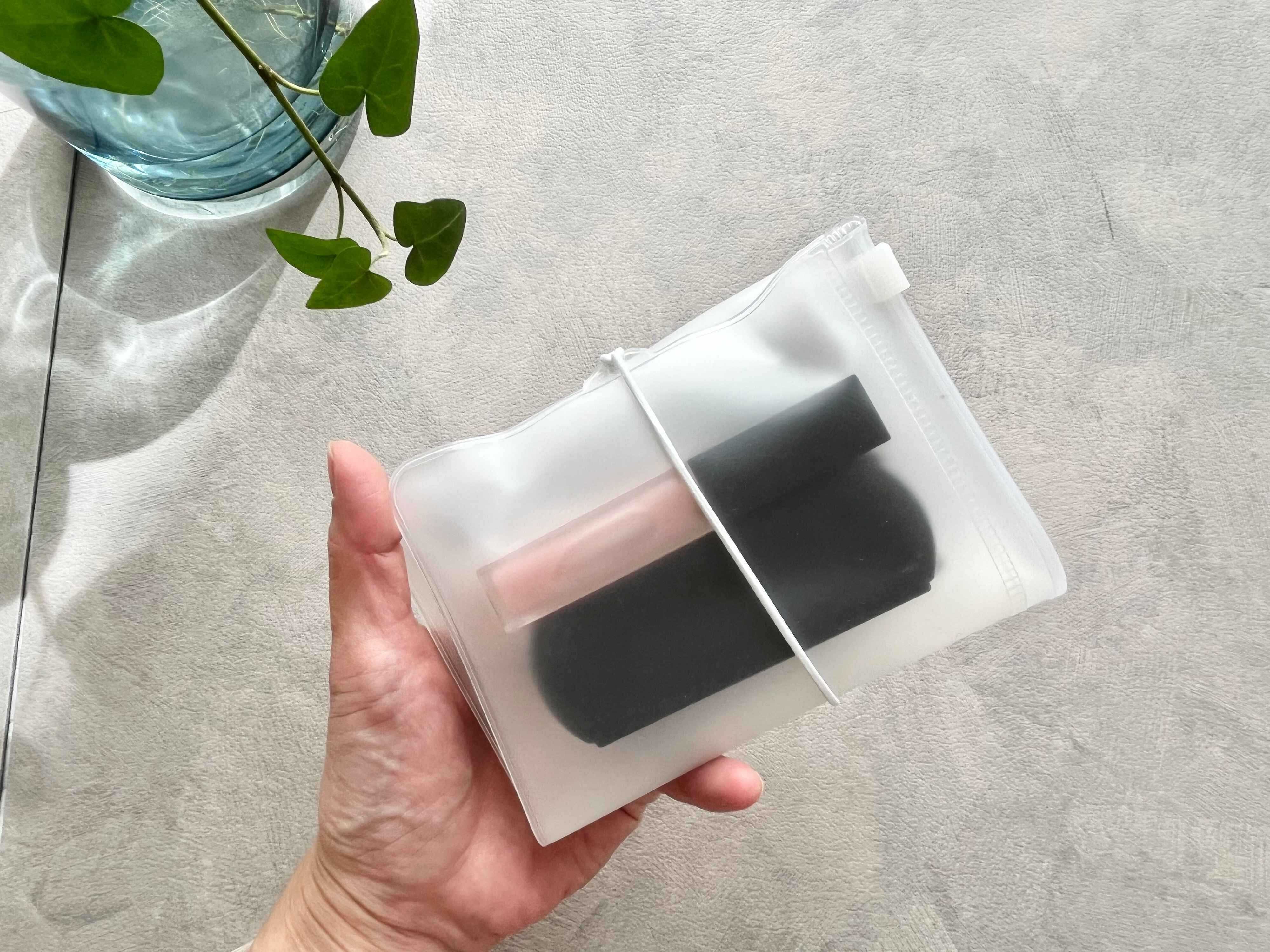 EVA樹脂でつくられていて中身が透けて見えるので、どこに何が入っているのか見つけやすいのもうれしいポイント!取り出しがとってもスムーズに行えます。開封だってスライダーで開け閉めするだけなので、とっても楽ちんです。