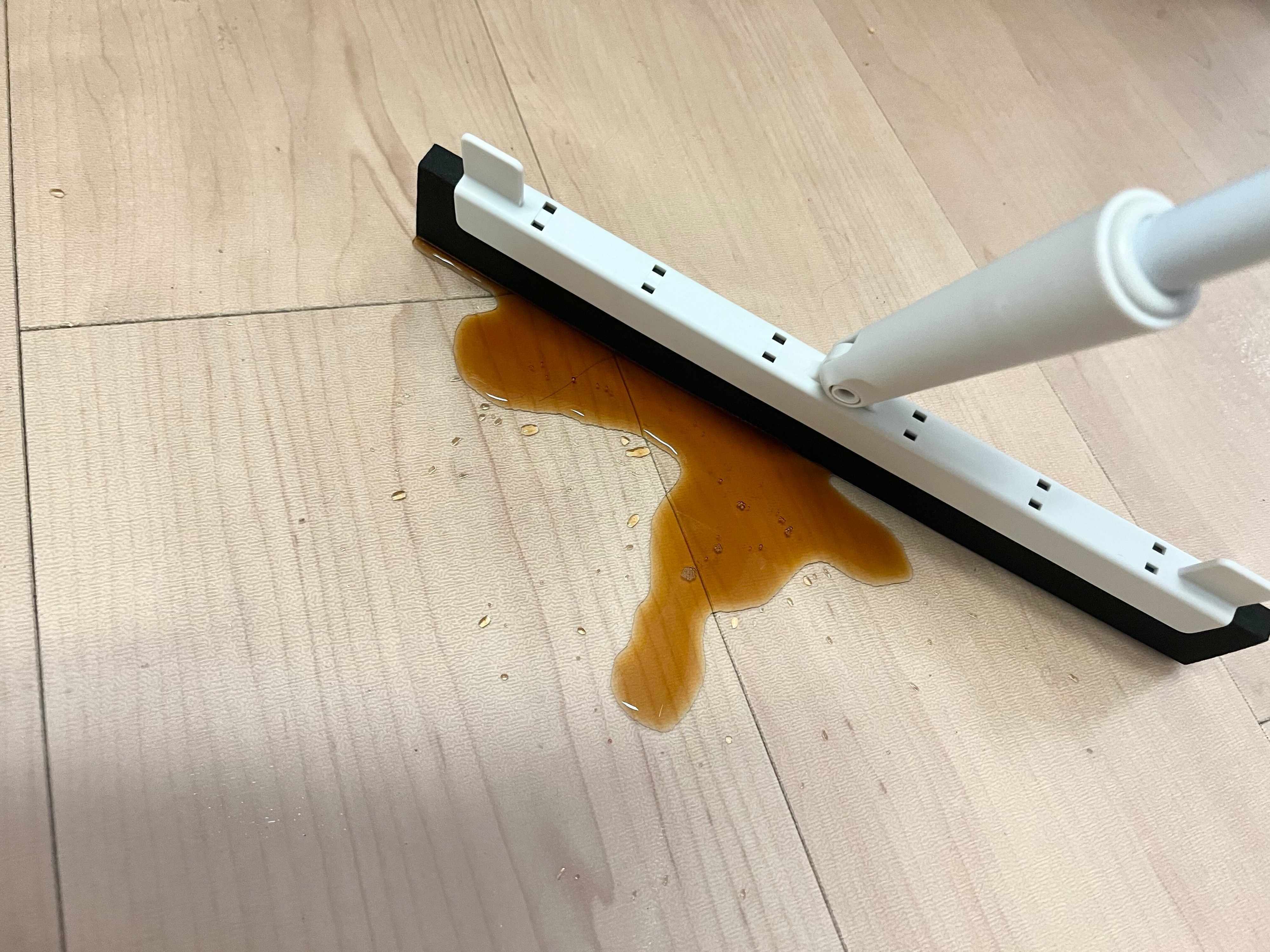 こちらの商品は、液体を掃くことも可能です。飲み物をこぼしてしまったとき、また浴室掃除や窓掃除の水切りにも使える優れものなんですよ。