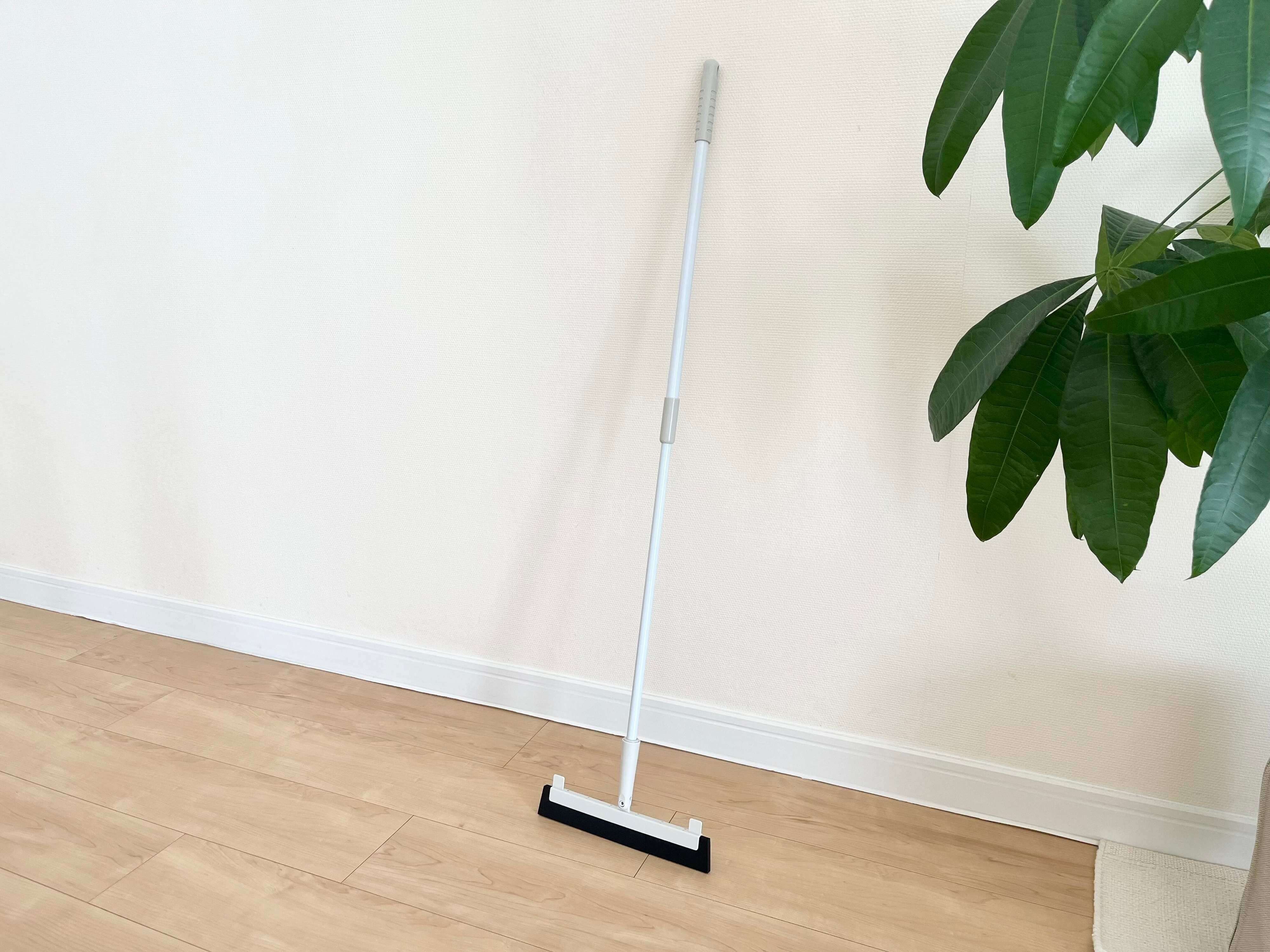 セリアの「フロア ラバーほうき」は、掃く・水切り・拭くという3つの作業を、コレ1本で手軽にできちゃうという画期的なほうきです。しかも汚れたら丸洗いできるので、お手入れだってとっても簡単!掃除機よりも軽く、使いたいときにすぐサッと手軽に使えるので、お掃除のハードルがグーンと下がっちゃうかも。