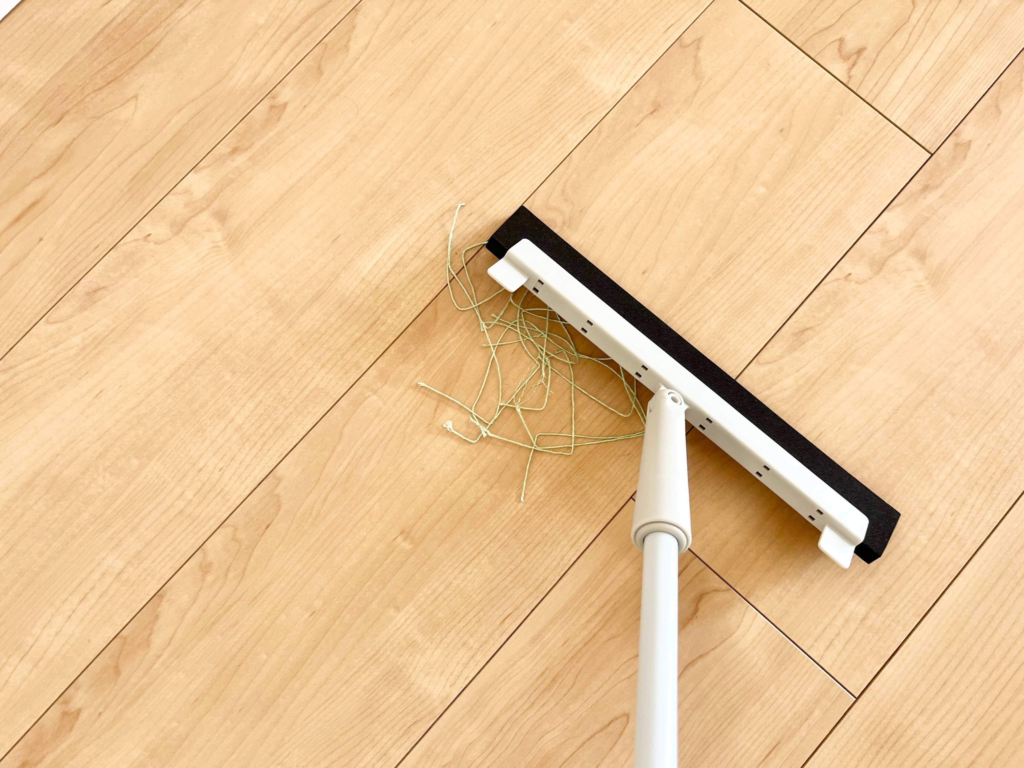 一般的なほうきのように、まずは掃き掃除に使用できます。ラバー部分が床やカーペットなどにしっかり密着し、静電気の力を利用しながらこまかいゴミや髪の毛などをキレイにかき集めてくれます。