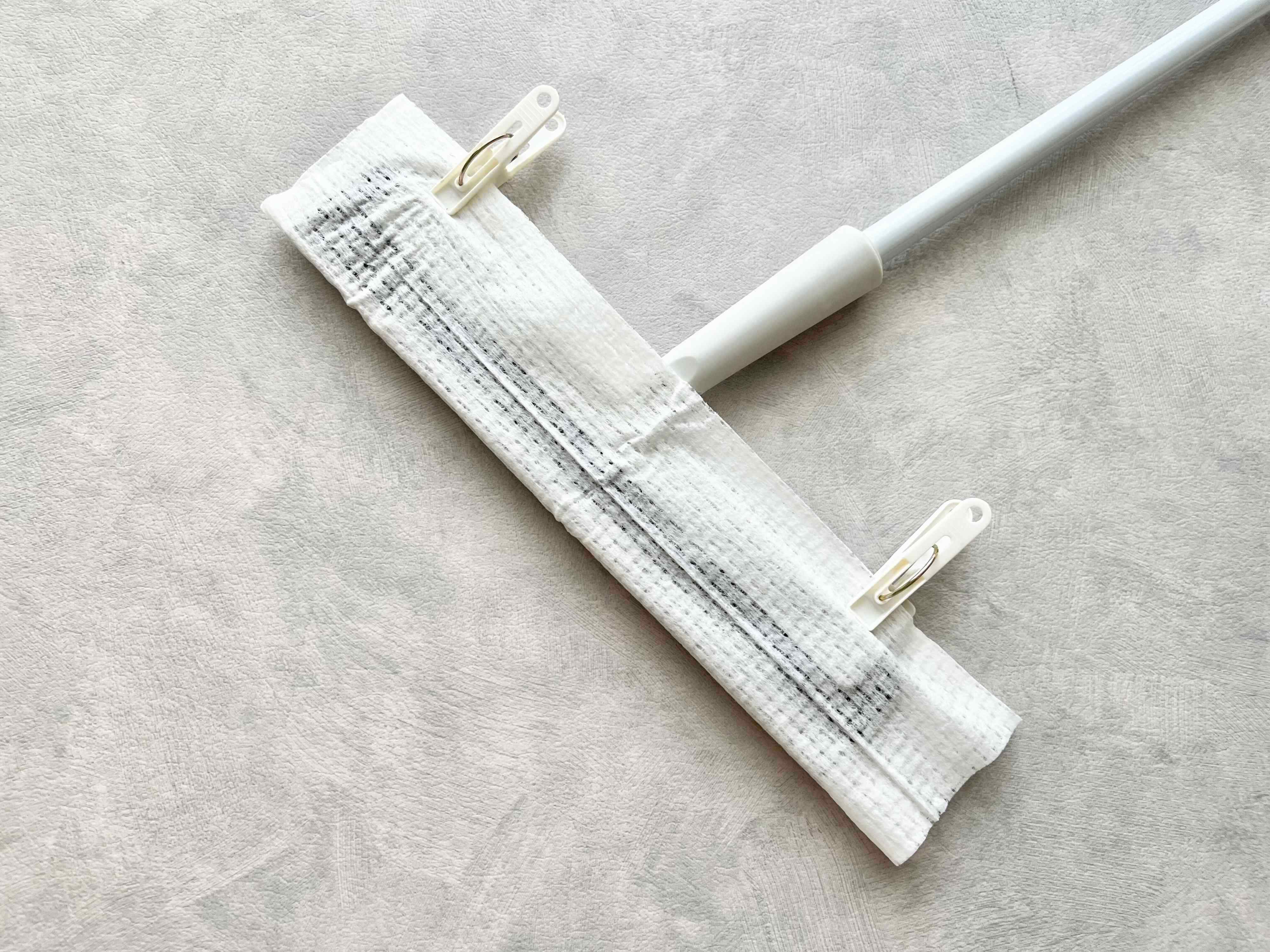 さらに25cm×16cm以上のサイズの市販のウェットシートや雑巾などをクリップや洗濯バサミで取りつけることができるので、拭き掃除にも使うことができます。