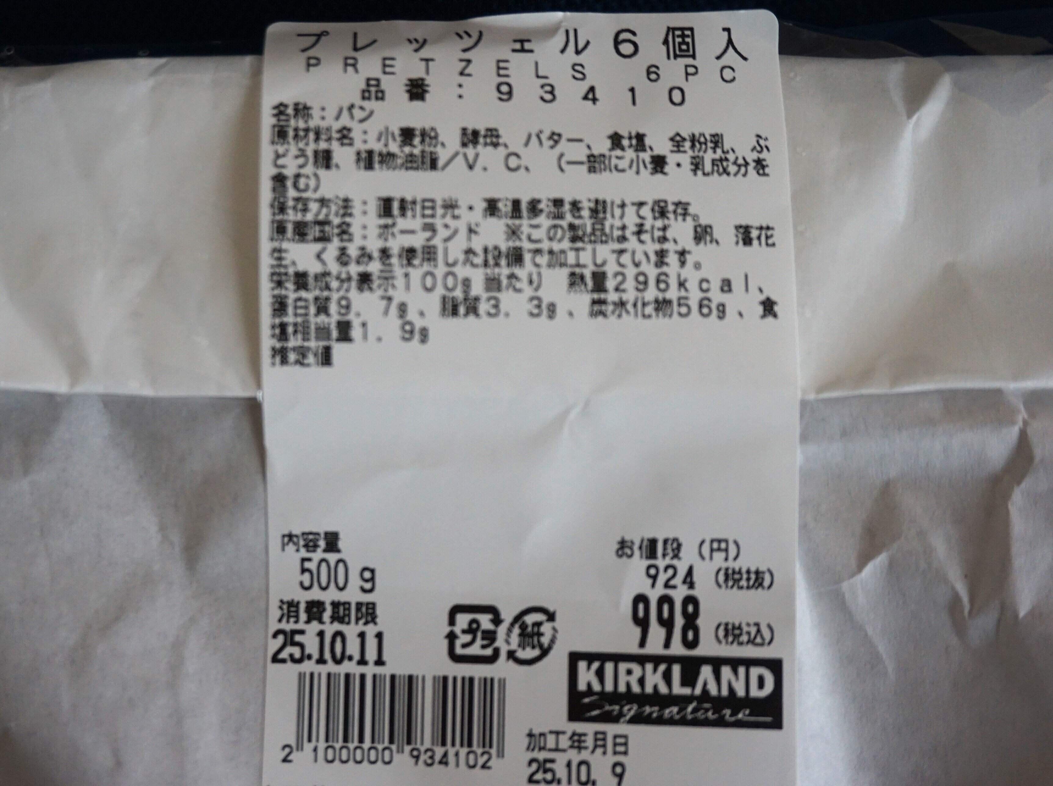 ヨーロッパで広く食されているプレッツェル。コストコで販売されているのは、ポーランドから輸入されたプレッツェルです。