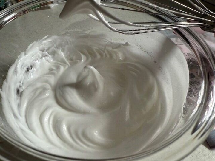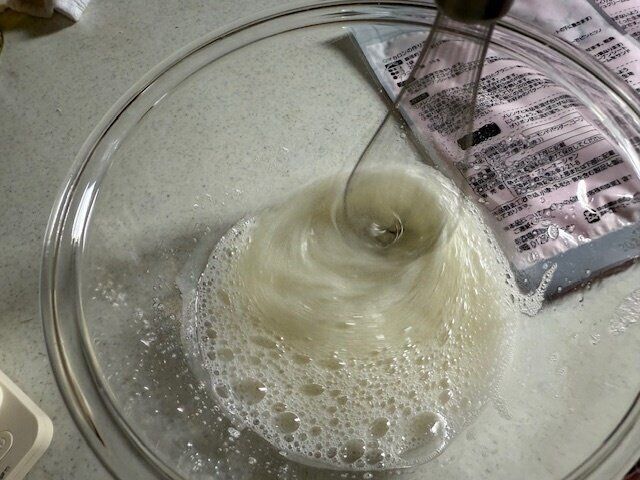 ハンドミキサーを使用して、10分もかからずにしっかりとツノが立つメレンゲが完成しました。