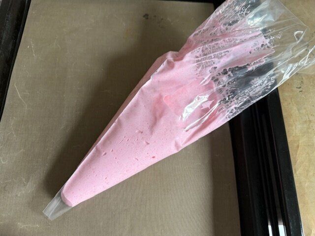 出来た生地を絞り袋にいれて、オーブンの天板に均等に絞っていきます。