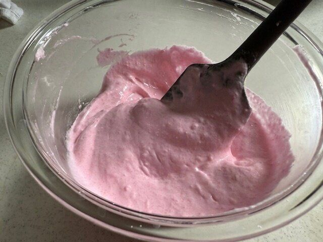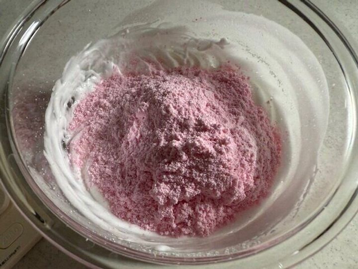 今回はミックス粉のピンクを使ったので色鮮やかなピンク色になりました。
