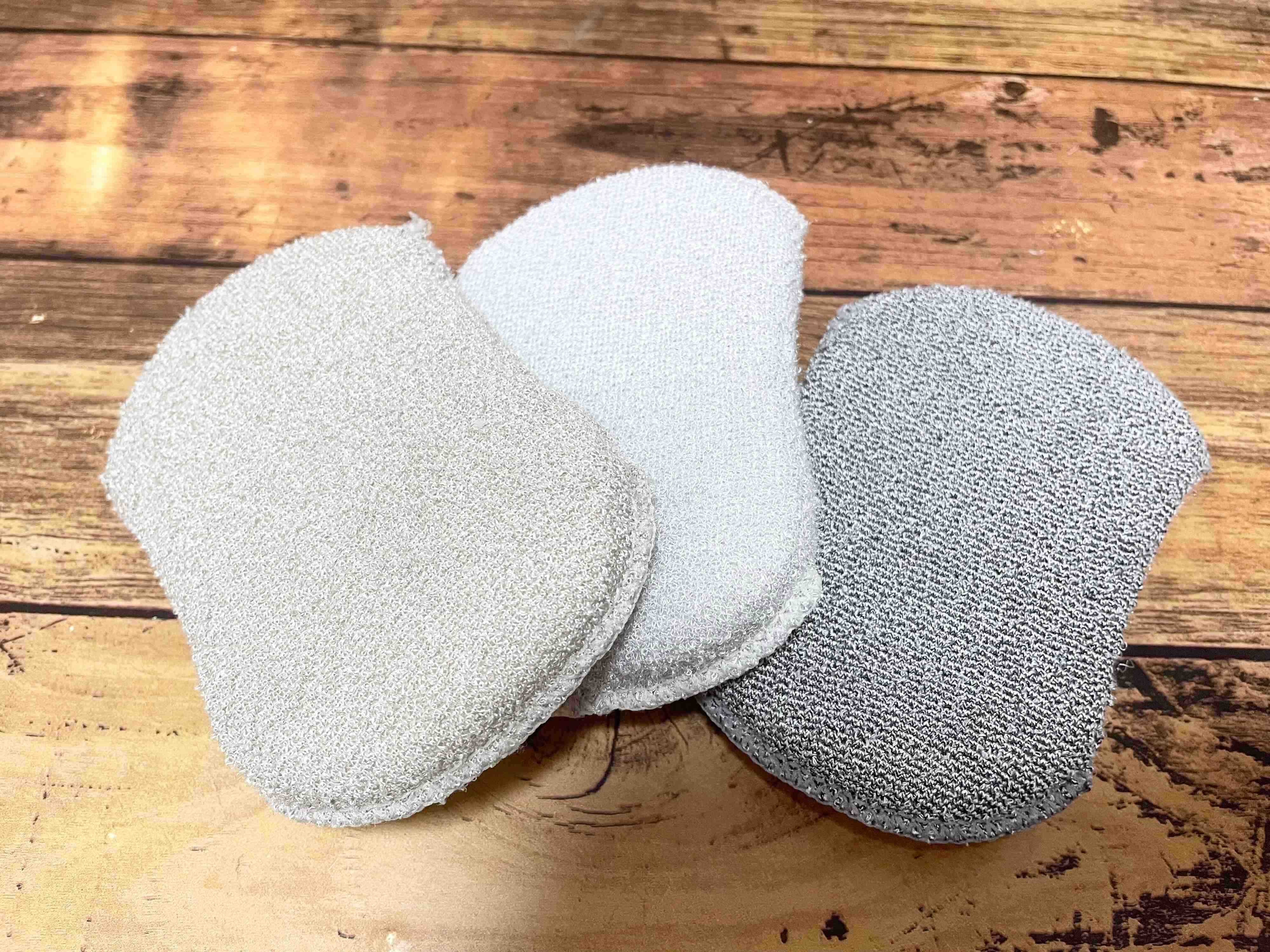 「もっちりスポンジ3個セット/KITINTO」(330円)は、硬すぎず柔らかすぎないもっちり感触のスポンジ。手にフィットする絶妙なデザインが使いやすく、もう数え切れないくらいリピートしています。