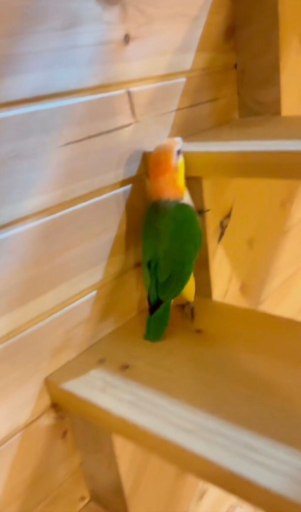投稿したのは、シロハラインコのレオちゃんが階段を上るときの動画。