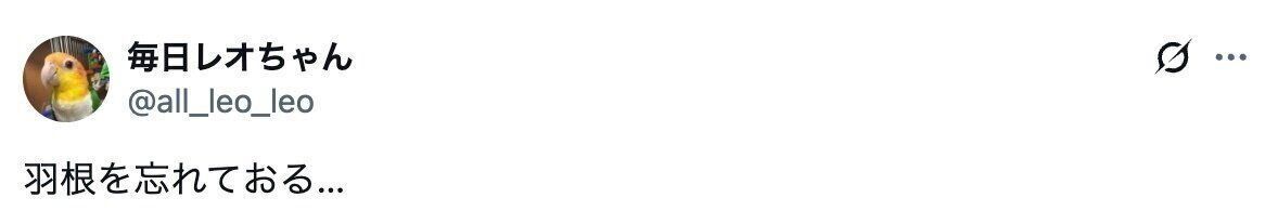 「テレビ番組で紹介していただいた際に、小鳥専門の獣医さんから『この子は自分を人間だと思っている』『飛ぶと疲れるので、体力温存のために歩いているのでは』というコメントをもらったことがあります。我が家ではレオを愛娘として寝起き、ごはん、お風呂、トイレ、お出かけも全部一緒にしているので、飼い主が歩いているから自分も歩こうと思っているのかもしれませんね。きっと自分が人間だと思っていて、翼があることを忘れていそうなので、『羽根を忘れておる……』という投稿にしました」