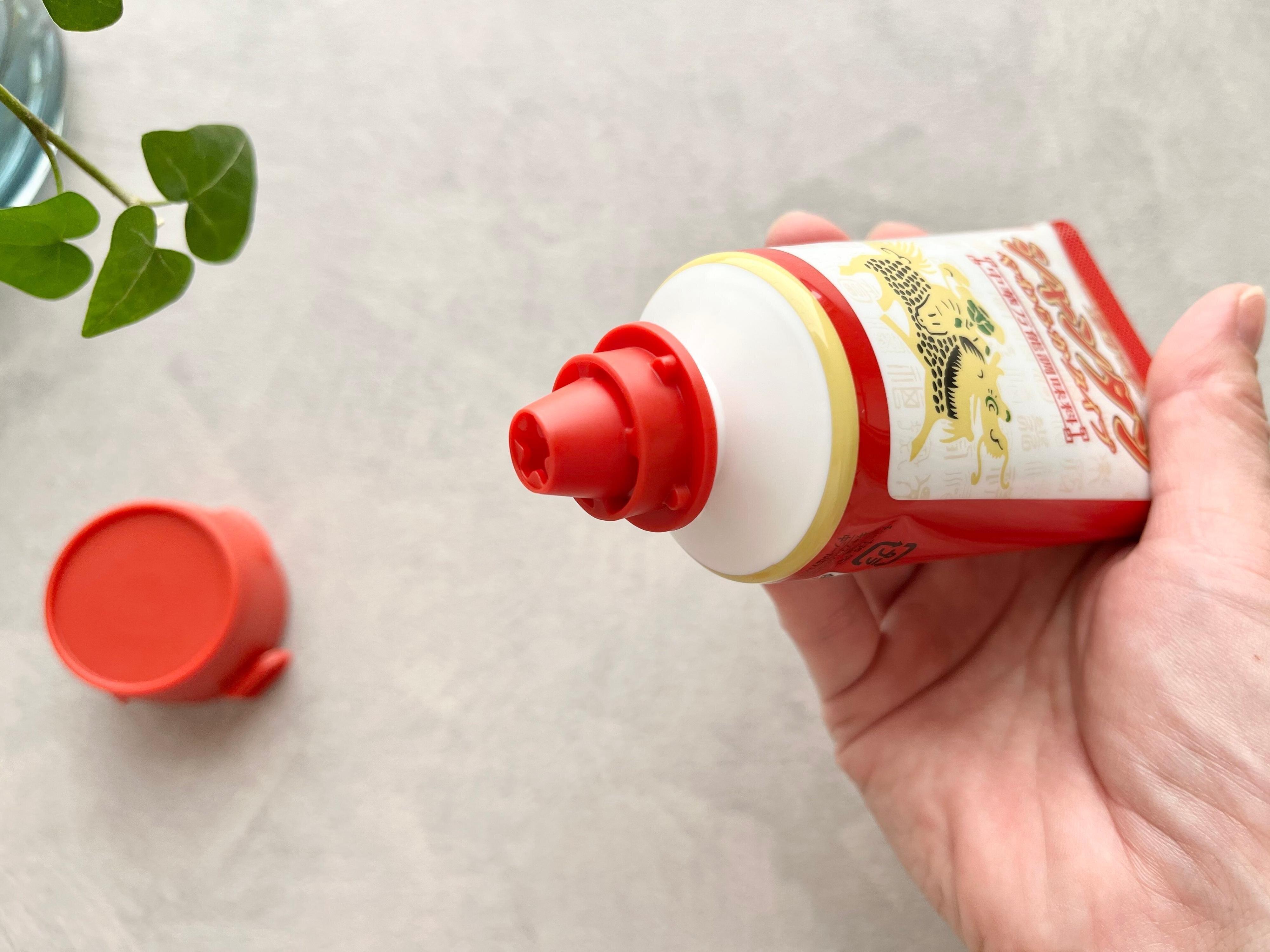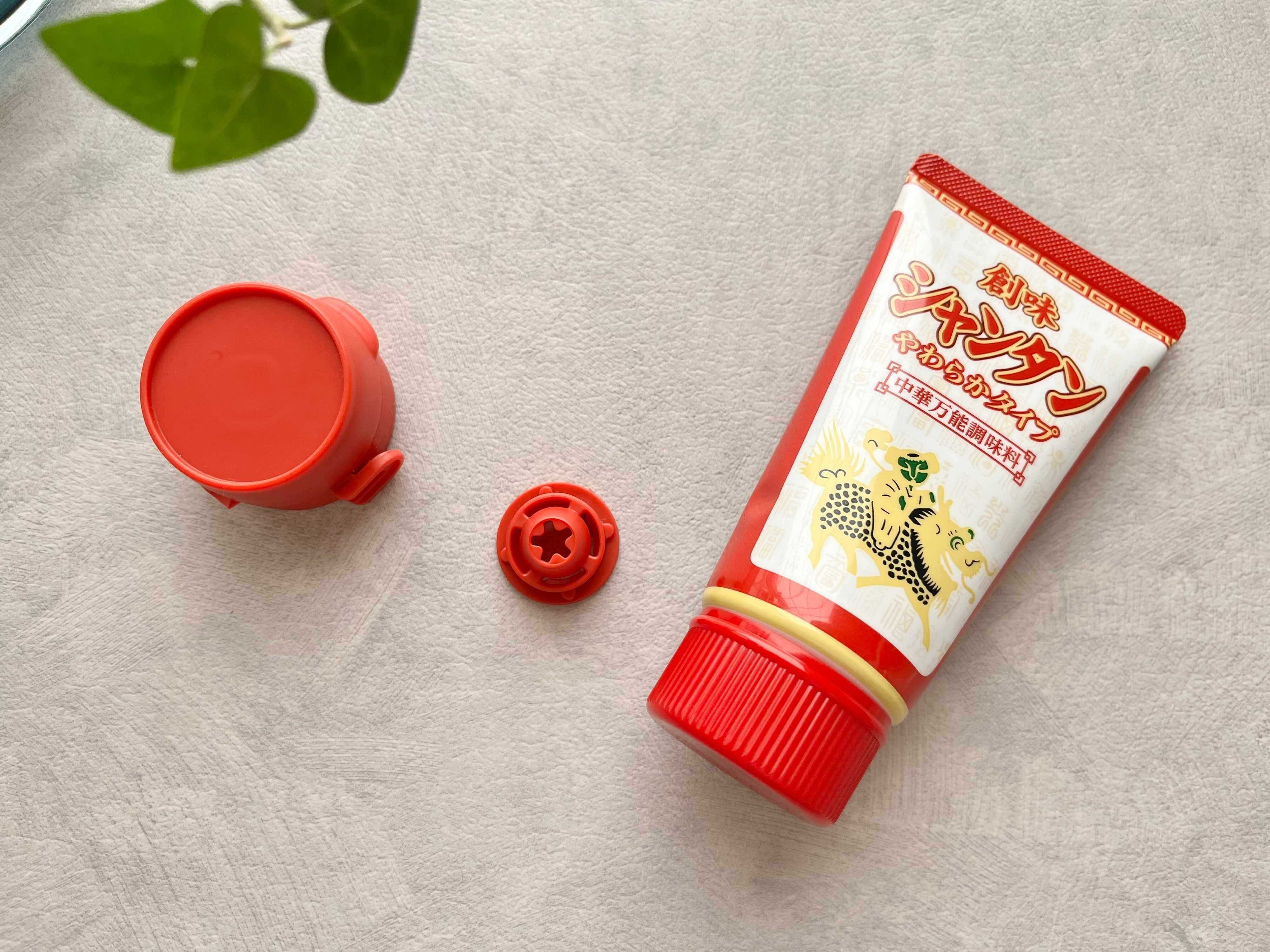 これだけで少し不便だった中華チューブのキャップの開け閉めが、片手で簡単にできるようになります。取り外さずに使えるので、調理中にキャップを落としたり紛失するのを防ぐこともできますよ。