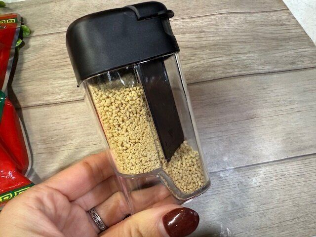 このボトルは中に仕切りがあって、粉末だしを入れてみると…。