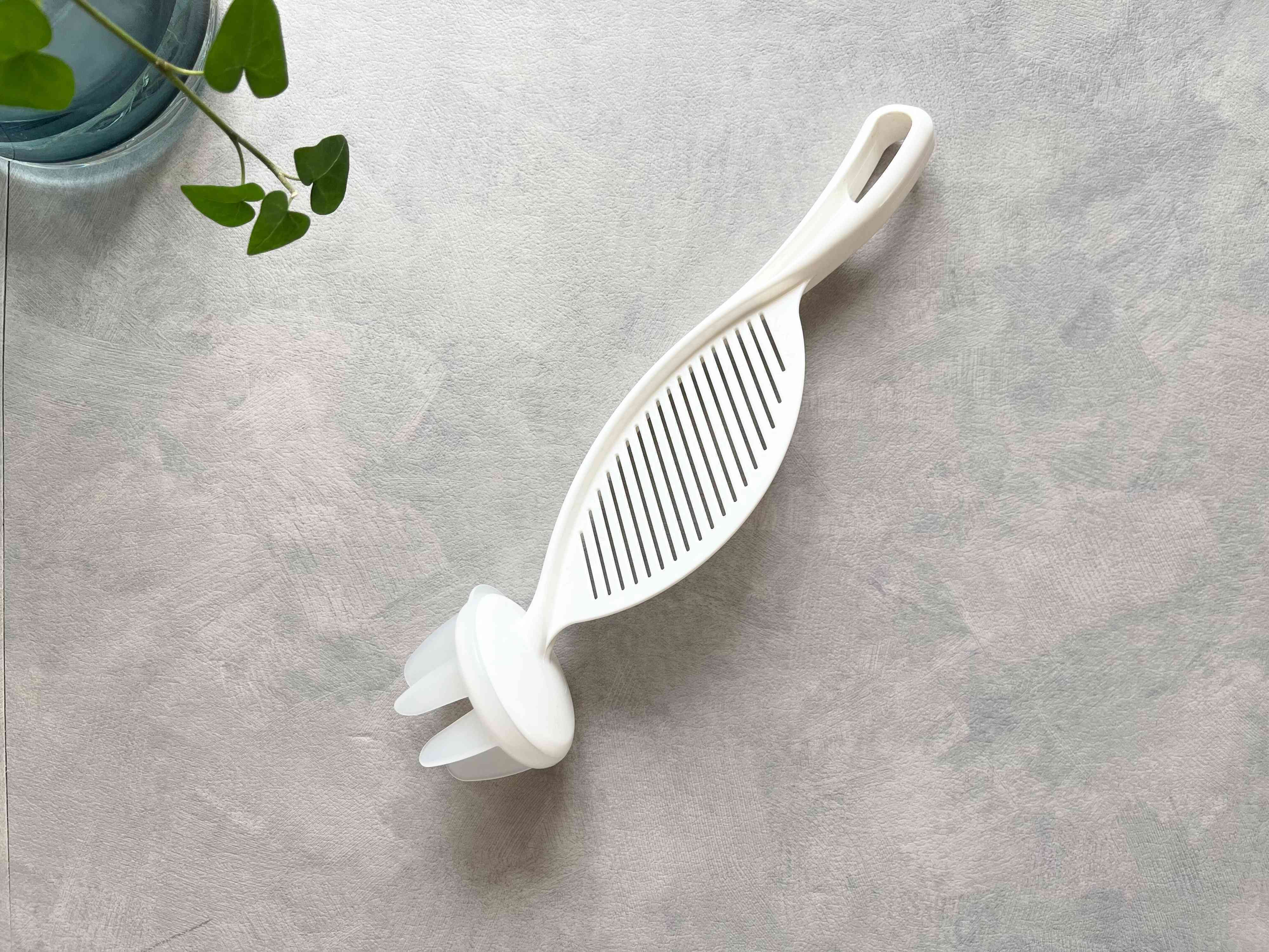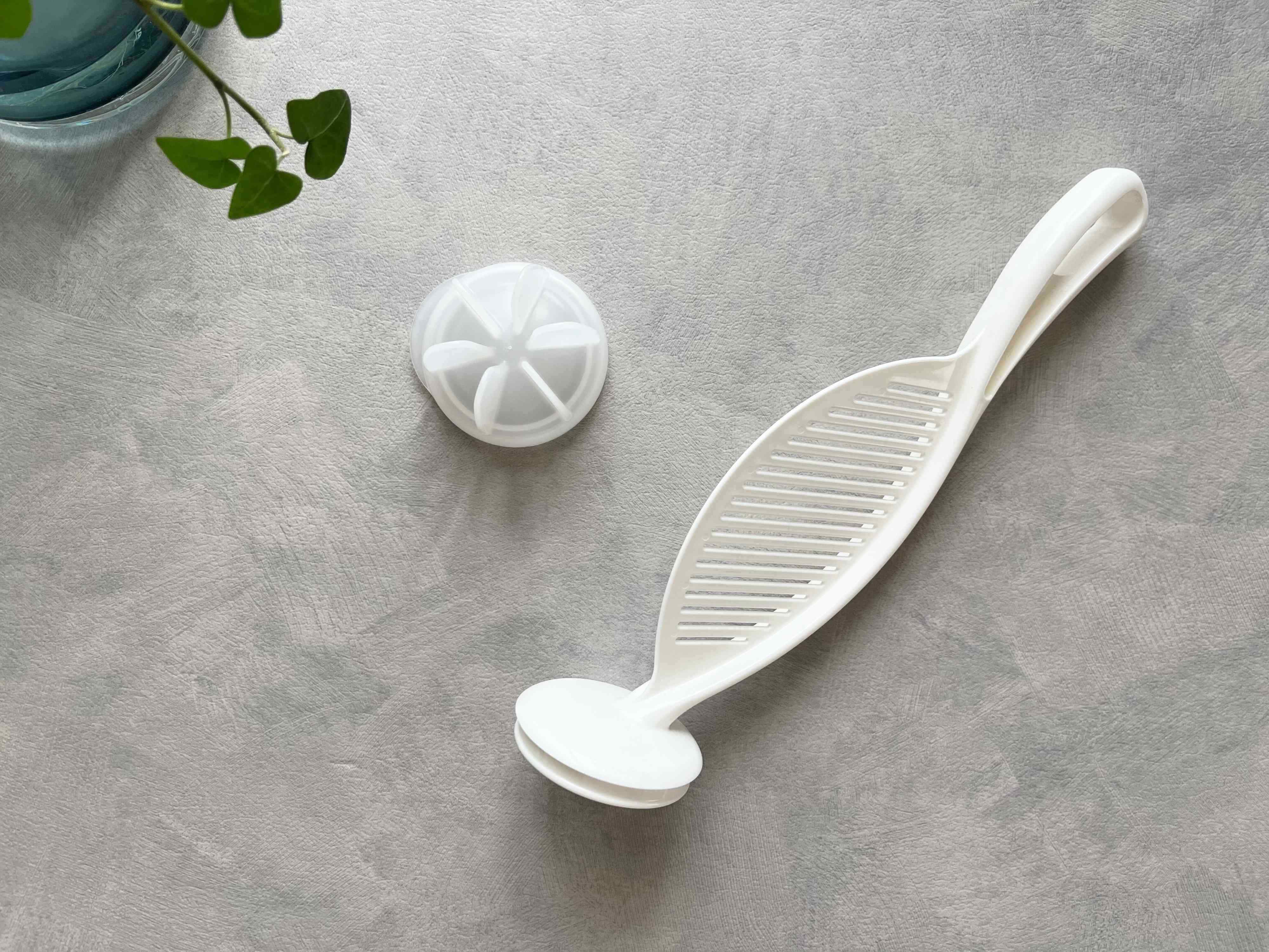 パーツは取り外せるので、使い終わったら手軽に丸洗いも可能。持ち手には穴が空いているので、吊り下げて乾かしたり収納することもできます。