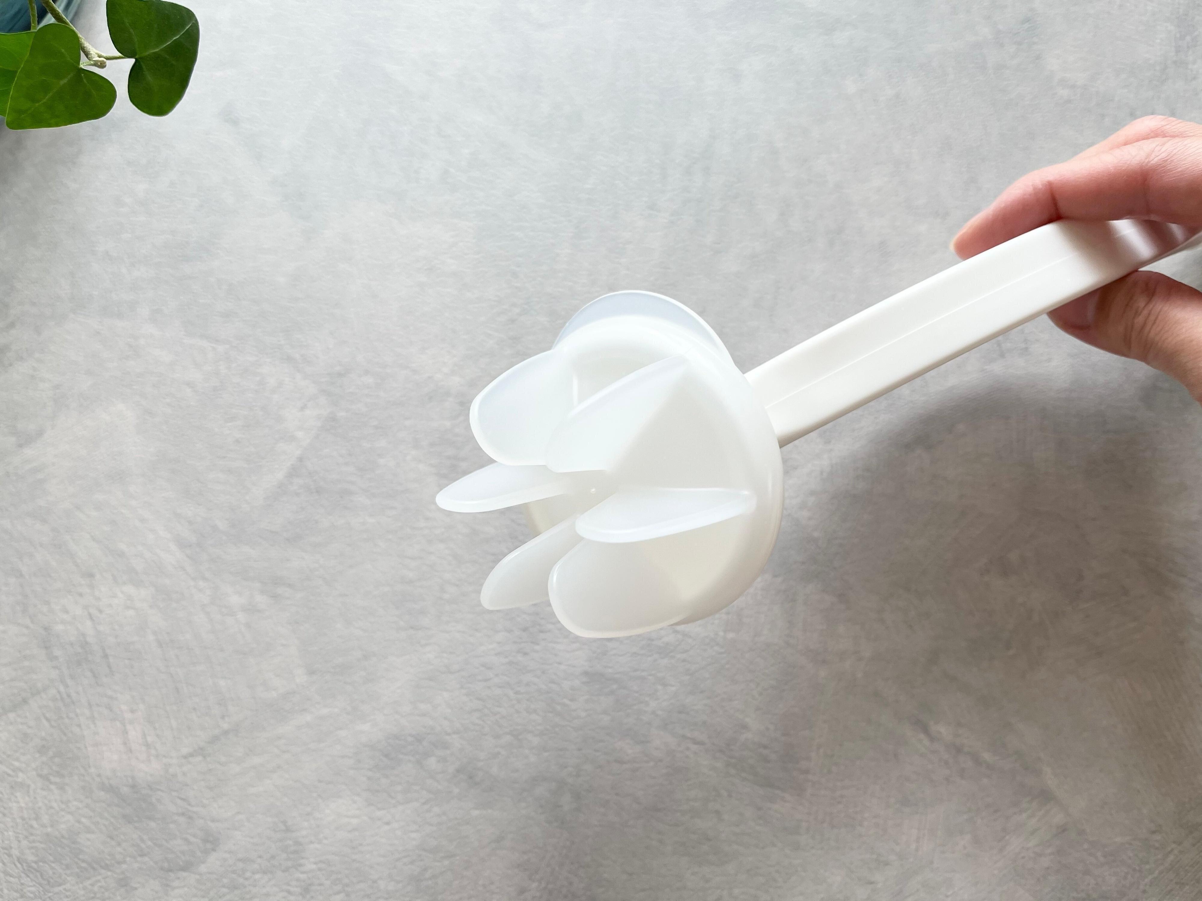 ご紹介するのは、ダイソーの「なるほど米とぎ ホワイト」(110円)。寒い時期のお米とぎは、冷たい水に手を浸さないといけないので少し辛い作業です。そんな時におすすめなのが、こちらの商品!冷たい水で手を濡らすことなくお米をとぐことができ、さらに水切りまでできちゃうという1本で2役使える便利グッズなんですよ。