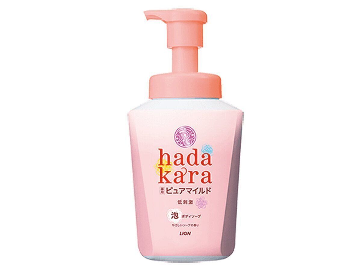 保湿成分が吸着するボディソープシリーズ。写真は「hadakara 泡で出てくる薬用ピュアマイルドボディソープ」肌荒れを防ぐ抗炎症成分配合。【医薬部外品】ハダカラ 泡ボディソープJa(550㎖)オープン価格/ライオン☎︎0120・556・913