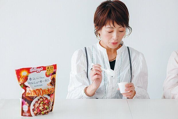 品川さん「かぼちゃの種やパッションフルーツが入っていて凝っている味ですね。これで脂質70 %オフというのは安心感もあるし、家族の朝食にぴったり」