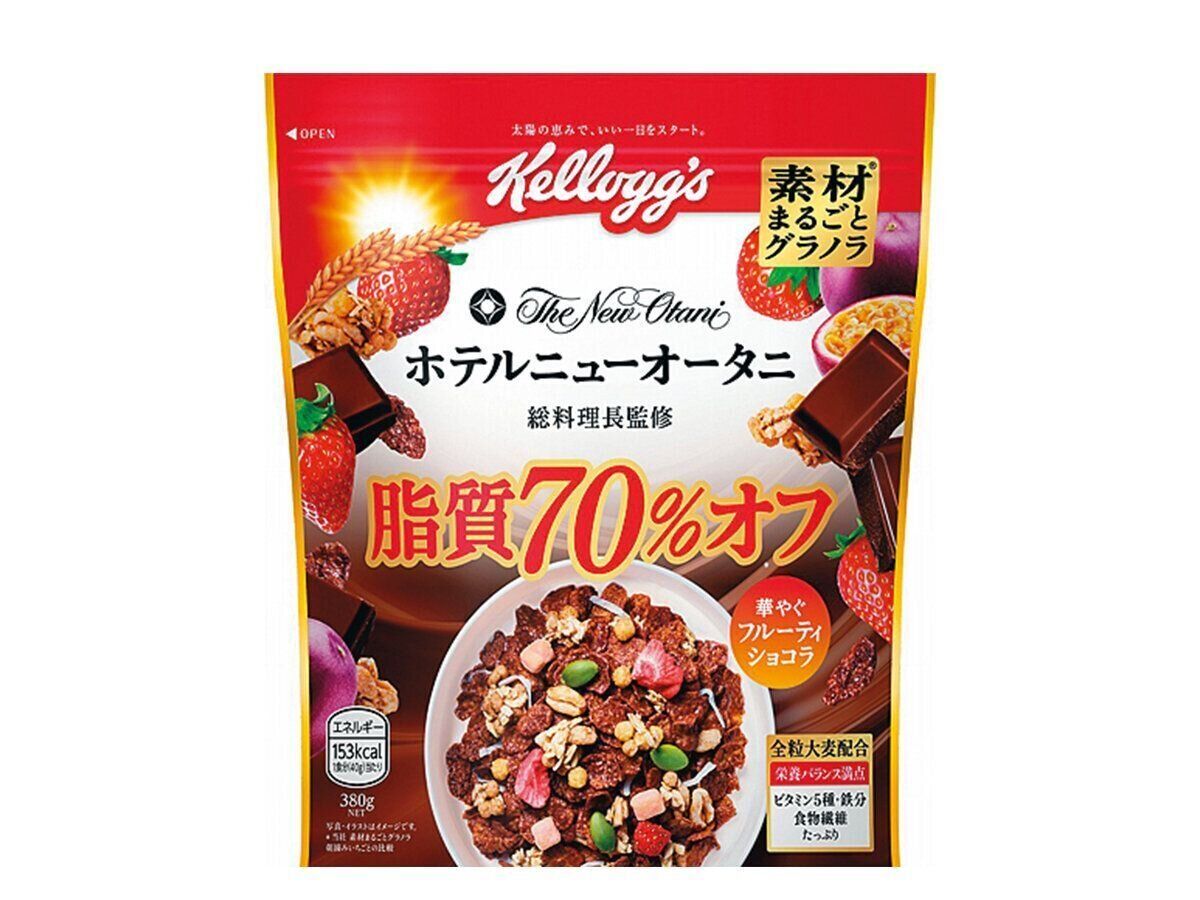 ホテルニューオータニ総料理長監修。カカオの香り高いチョコレート風味のシリアルに、いちごやパッションフルーツを絶妙にブレンド。(380g)オープン価格/日本ケロッグ☎︎0120・500・209