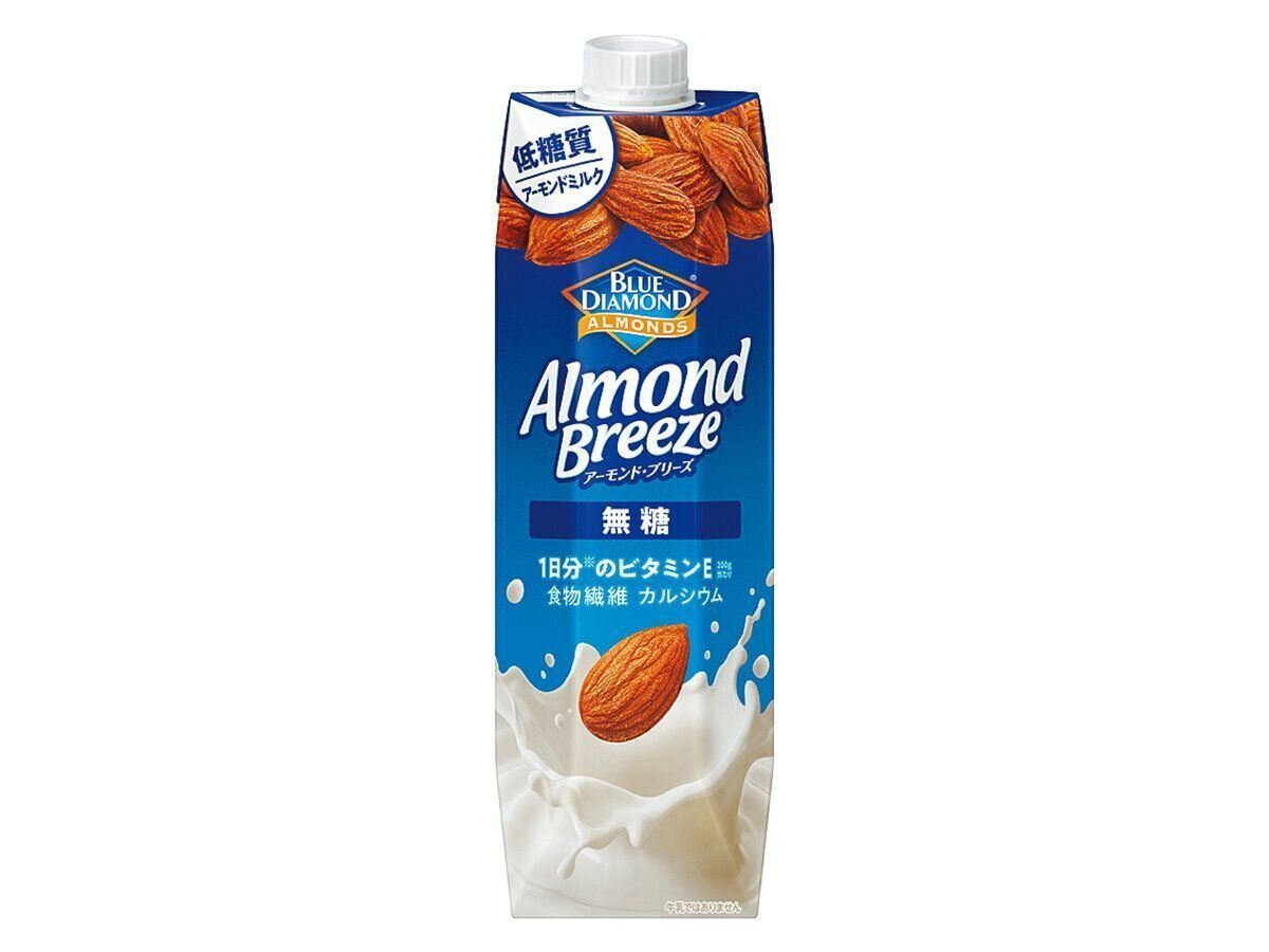 カリフォルニア産の品質にこだわったアーモンドを使用した植物性ミルク。低糖質で飲みごたえあり。写真は「アーモンド・ブリーズ 無糖 1000g」¥495/カゴメ