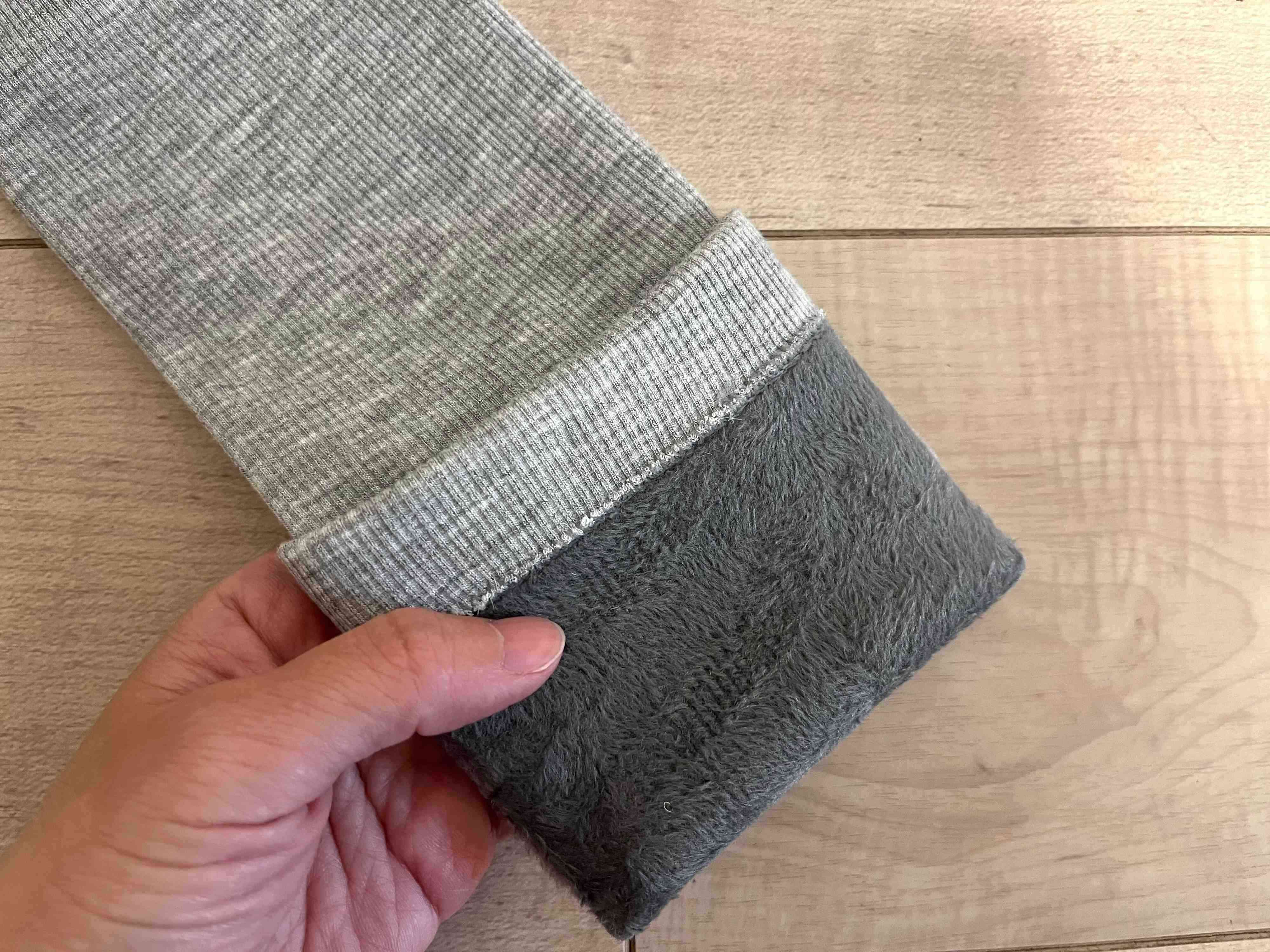 このレッグウォーマーの裏起毛はチクチクせず、ふんわりとした触り心地。