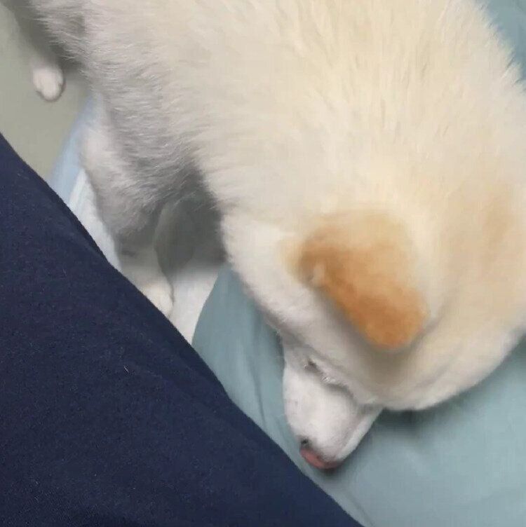 ソルちゃんと同様に、飼い主さんの衣服のニオイを嗅いでいるようです。