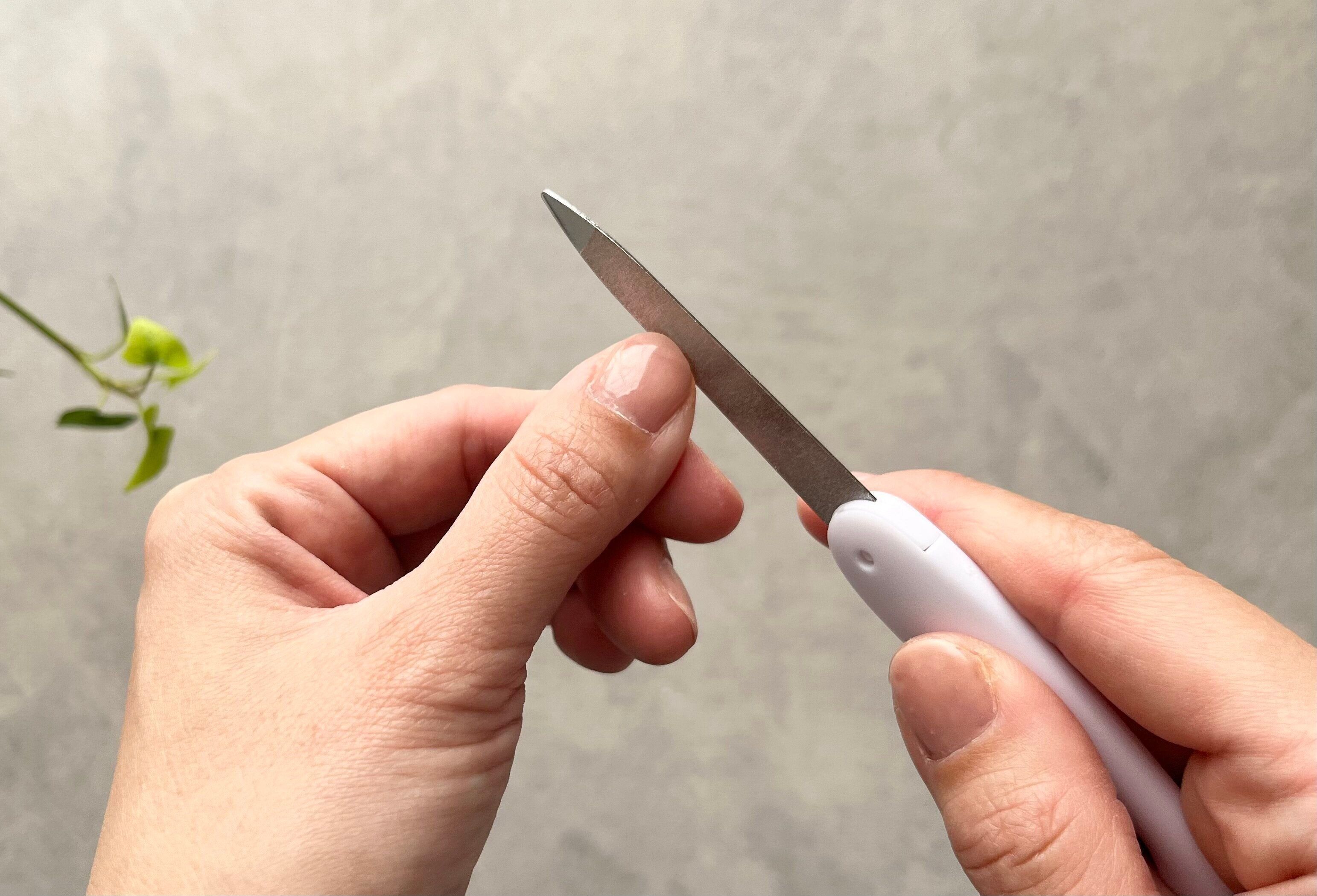 やすりの部分は両面仕様で、素材もスチールなので削りやすく効率的に爪を整えることができます。折りたたみ式のものによくある接続部のグラつきもあまり感じられないので、スムーズに使うことができます。