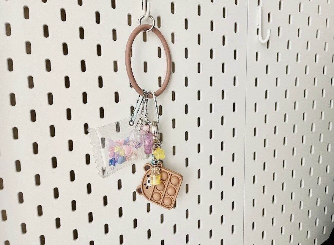 キーホルダーは、なんとなくケースにまとめて入れて収納している方も多いかと思います。しかし、取り出す時に絡まったり、探しにくいと思うこともありませんか?この収納方法なら、どこになにがあるのか探しやすく、絡まることがないので取り外しもとっても楽におこなえます。
