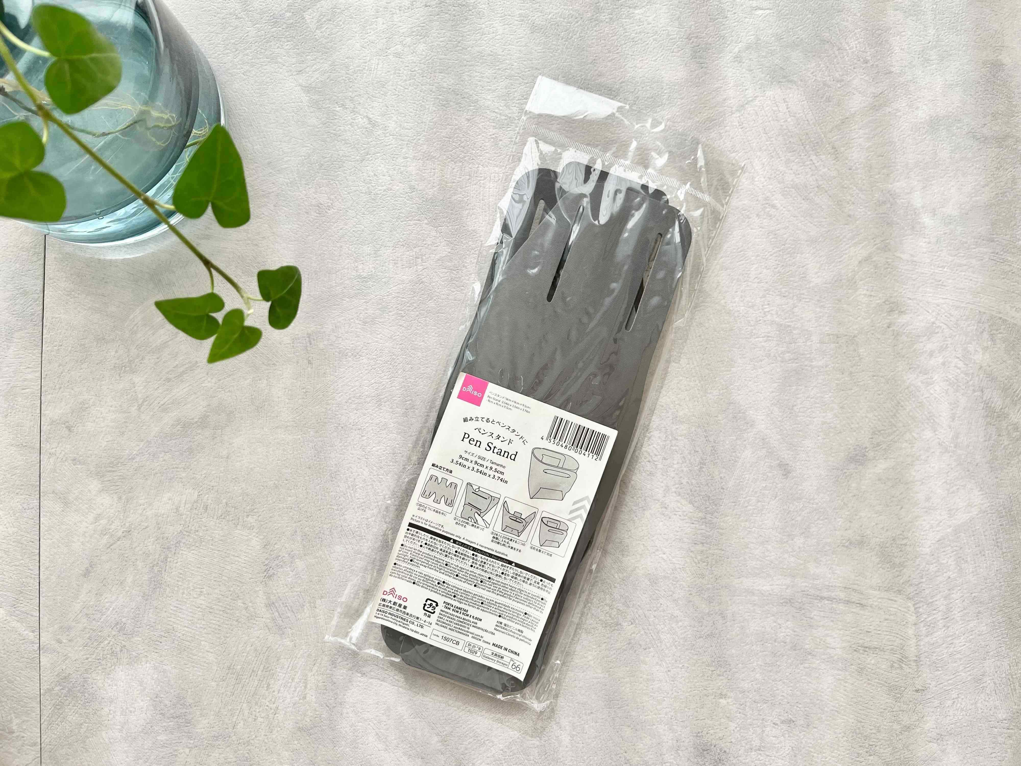 ご紹介するのは、ダイソーの「ペンスタンド」という商品。価格は110円。こちらの商品はふつうのペンスタンドとは違い、なんと組み立てられる機能的なペンスタンドです。使いたいときだけサッと組み立てることができ、使わないときは片づけられるという優れものなんですよ!