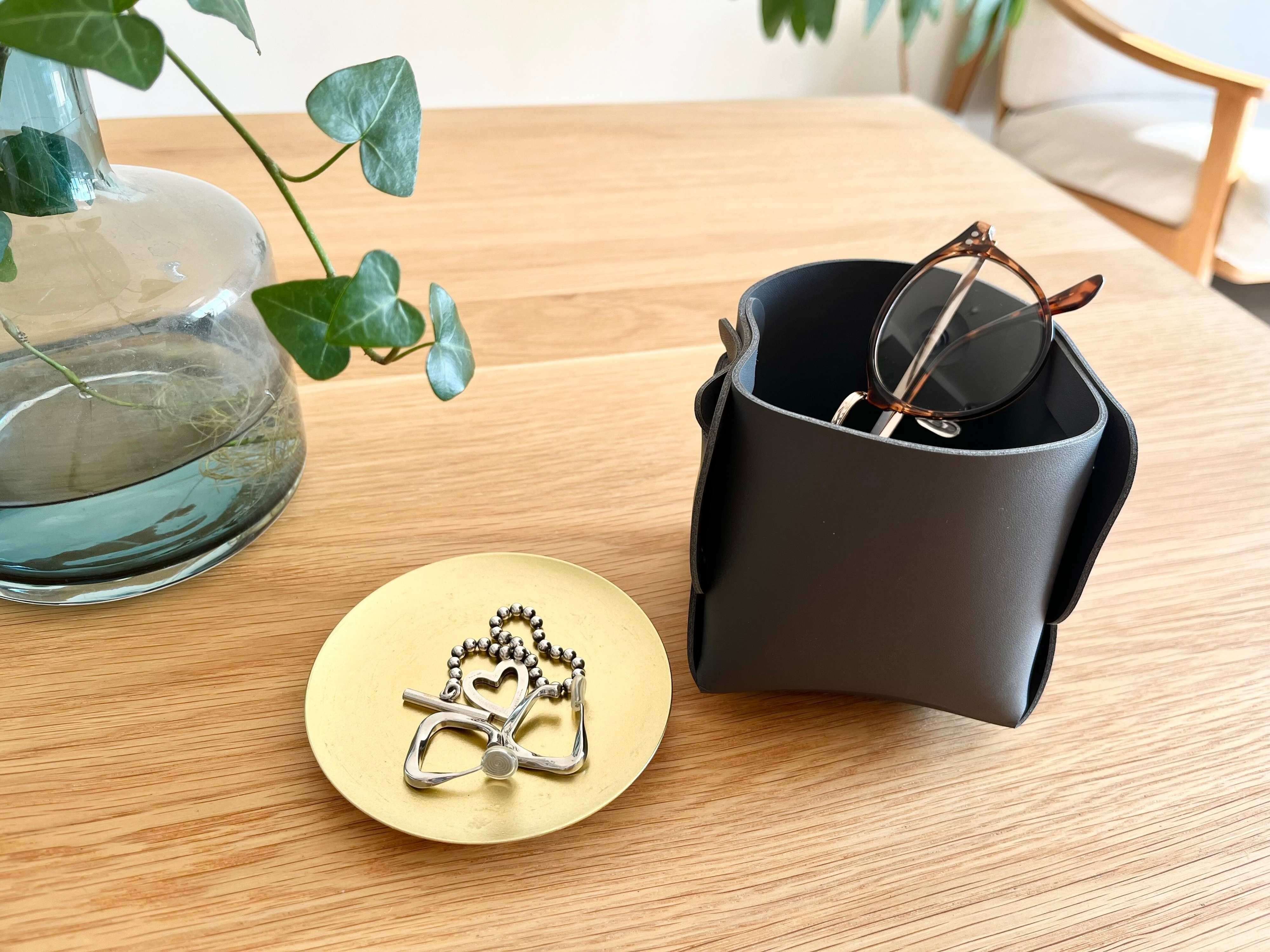 例えば、メガネやサングラスを置くのにも最適。ペンケースとは一見思えない高見えするデザインなので、ベッドまわりや棚などに置くととってもオシャレです。それに柔らかい素材なのでメガネを入れても傷がつきにくいのもうれしいですよね。