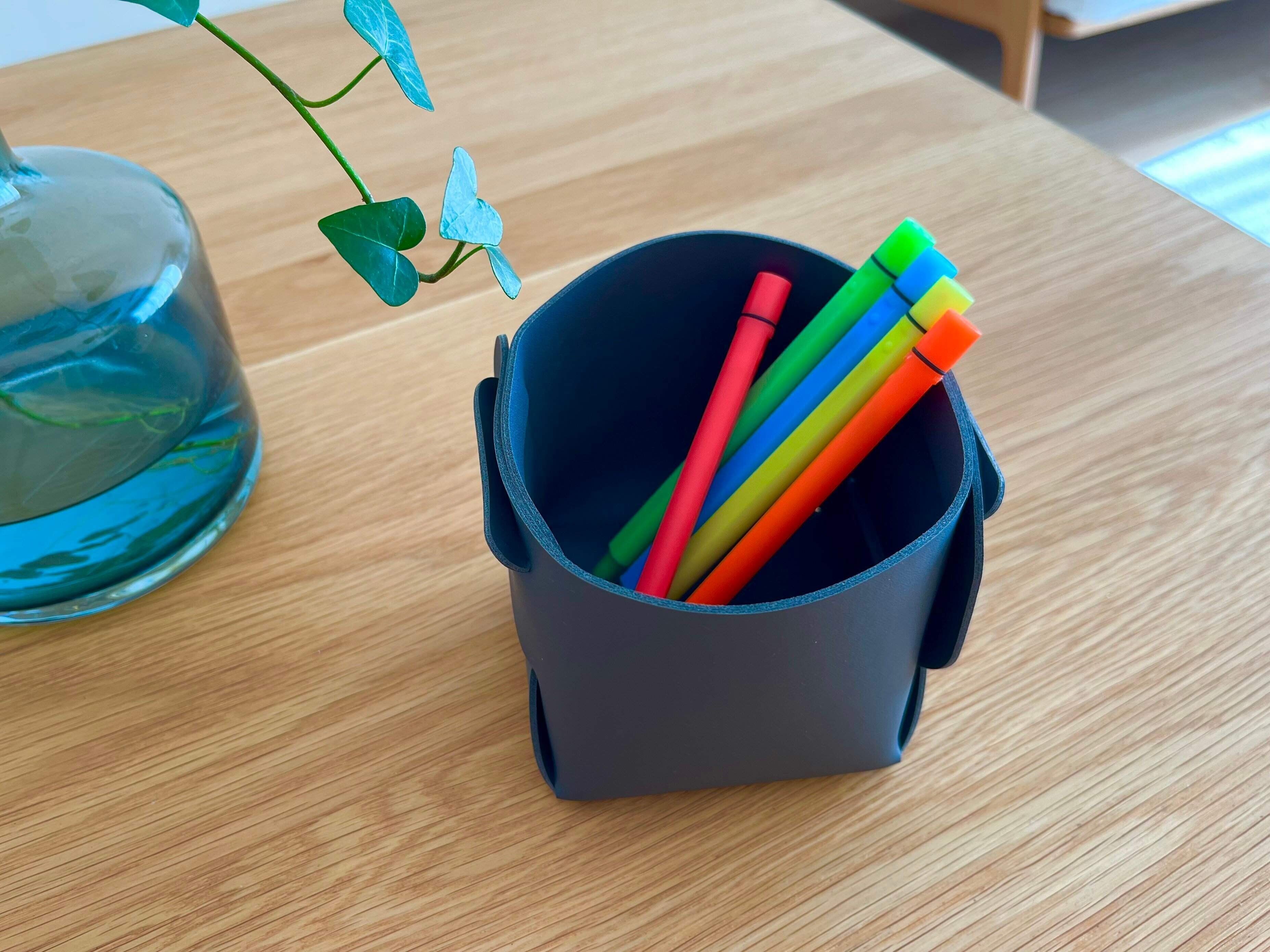 この隙間に左右対称になるように折り畳みながらパーツを差し込んで組み立てていくと、あっという間にペンスタンドが完成します。