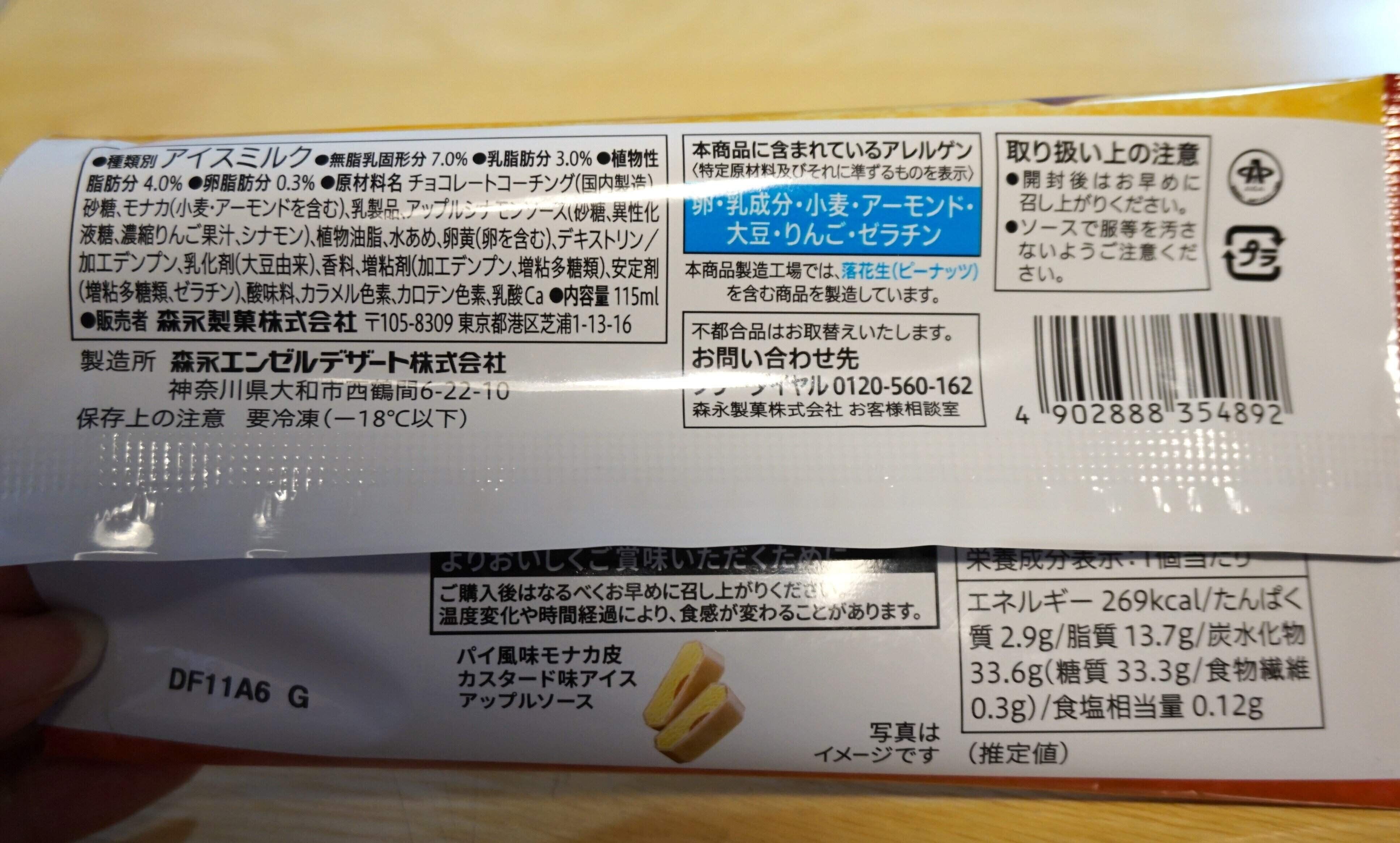 まるで焼きたてのアップルパイをそのままアイスにしたような仕上がりで、サクッと軽いモナカ皮の食感と、とろりとしたアップルソースが相性抜群なアイスです。