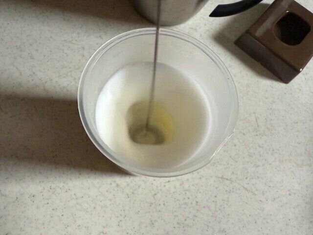 スイッチを入れた瞬間、牛乳があっという間にふわふわの泡に変わっていきます。