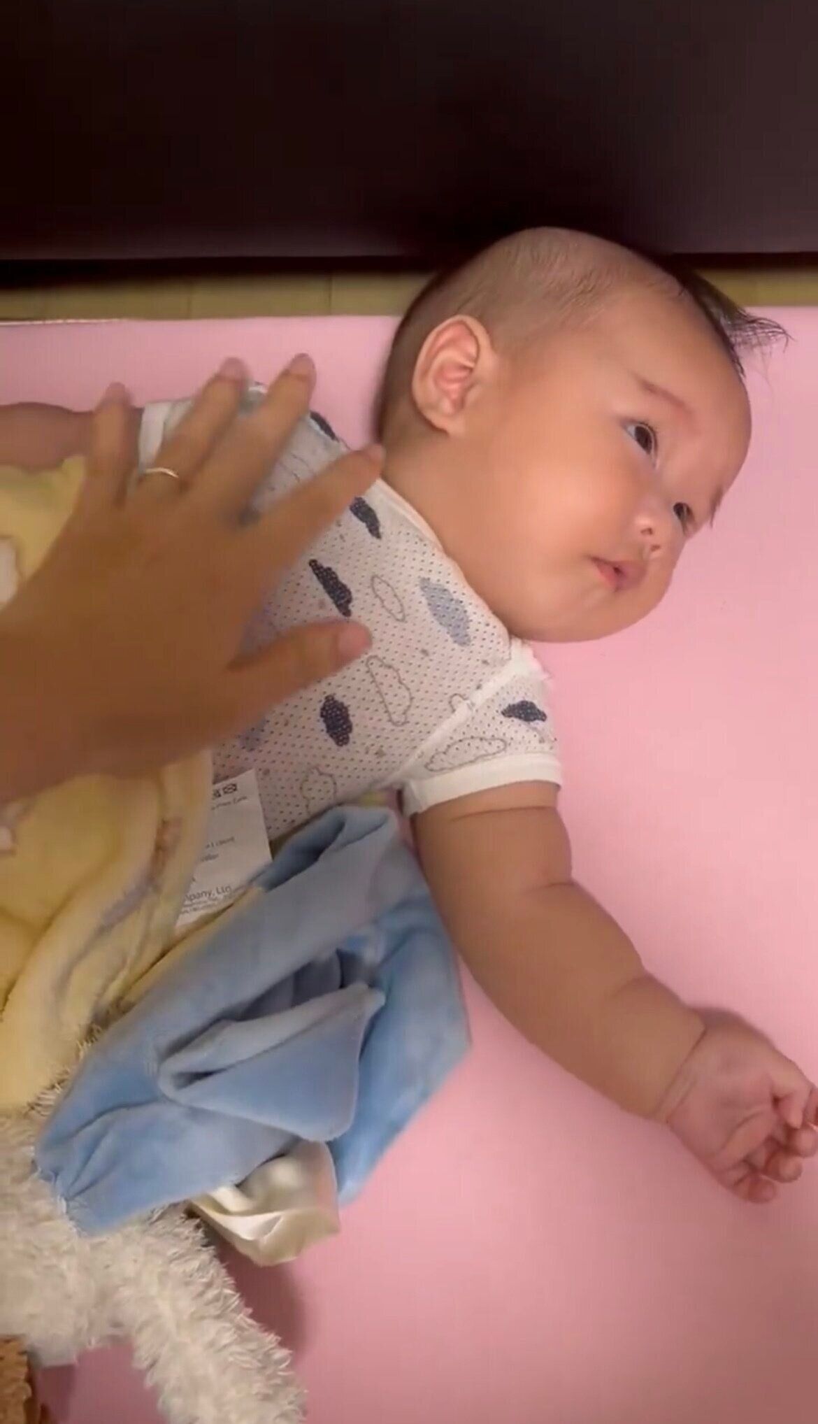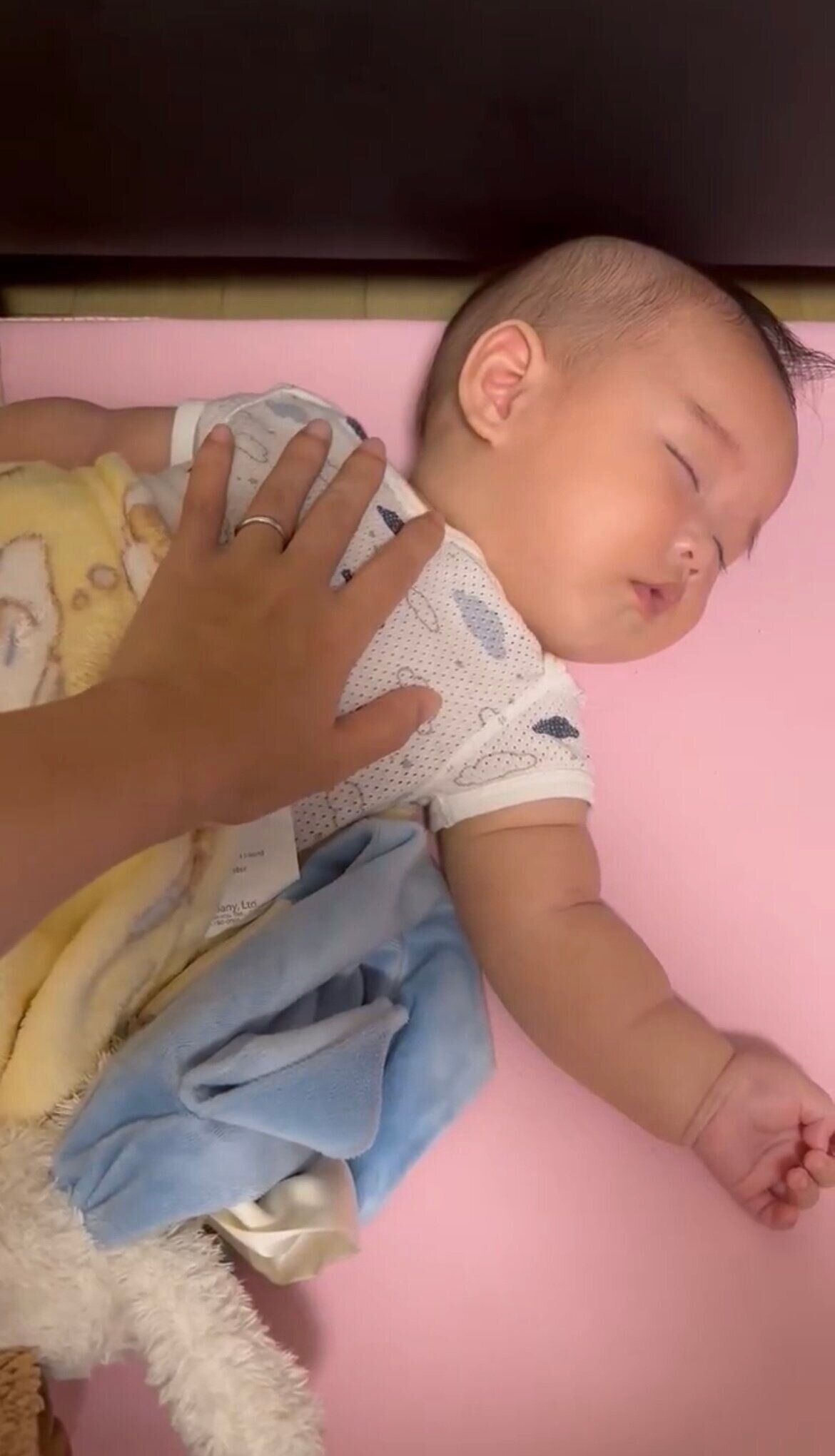 Aya 2y+6mさん(@yykksstarejda)が投稿したのは、生後4カ月の息子のネンネ動画。横になっている息子を、ママが手で優しくトントンすると……心地よさそうにスッと眠る息子に「可愛くて泣ける」「お利口さん」の声が集まりました。