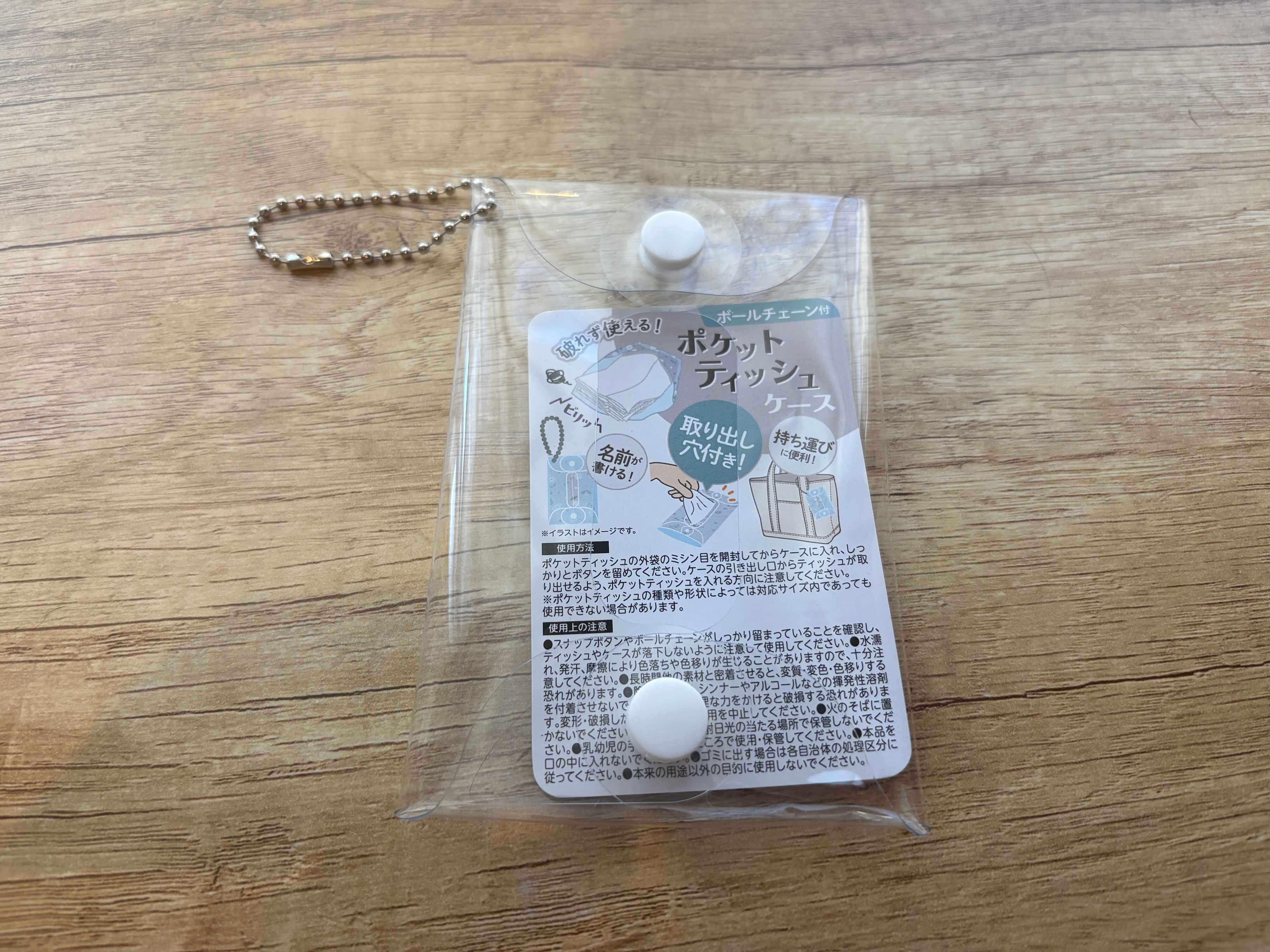 ケースは透明なので、お気に入りのポケットティッシュを持ち歩きたいですね。