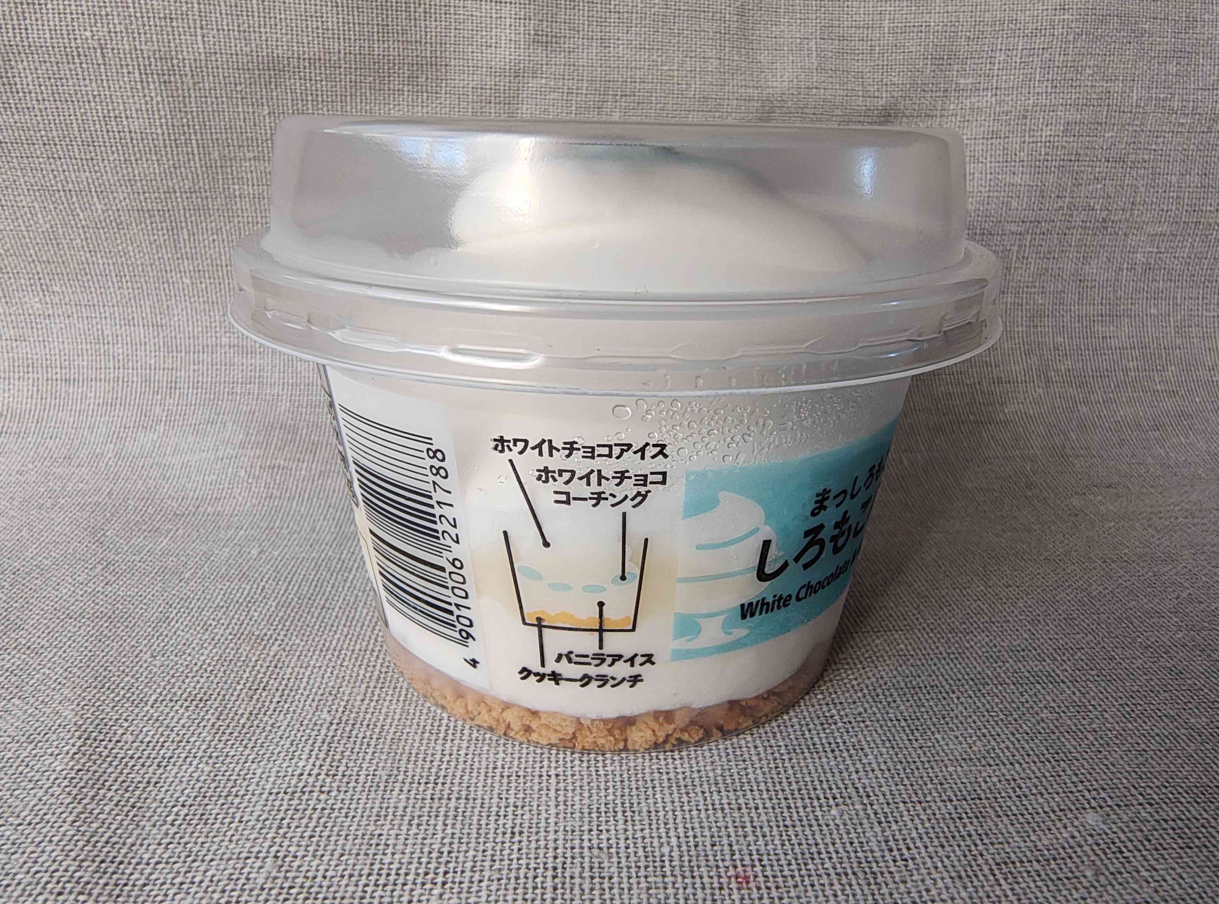 真っ白なアイスですが、一番上がホワイトチョコアイス、その下はホワイトチョココーチング、バニラアイス、一番下がクッキークランチになっているとのこと。