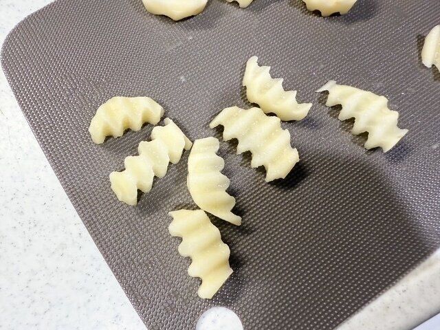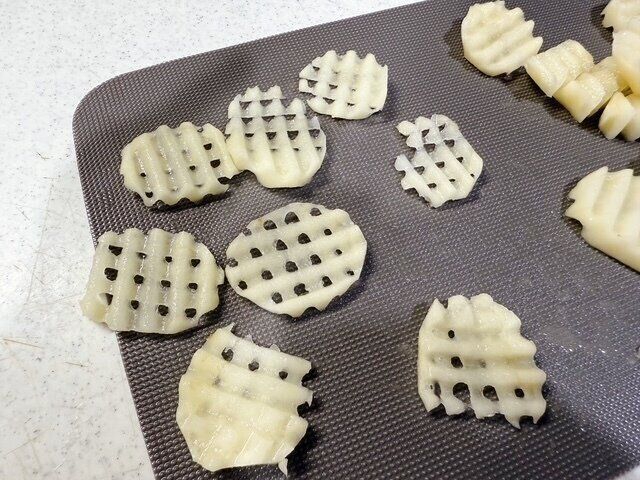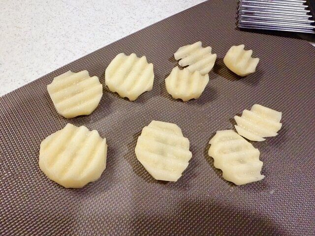 波形をさらにカットすると、市販で売っているような細長い波形のポテトも作れます。