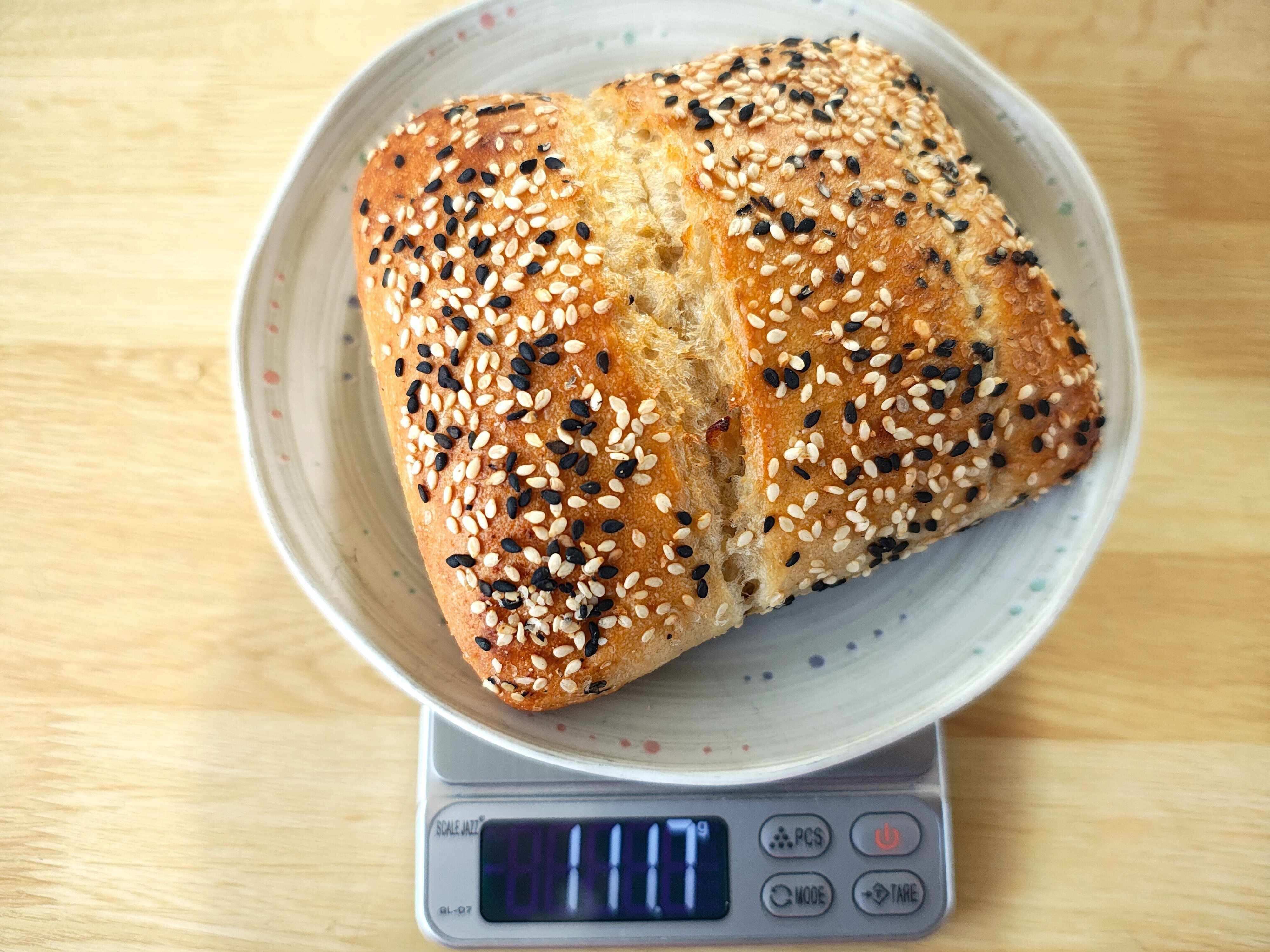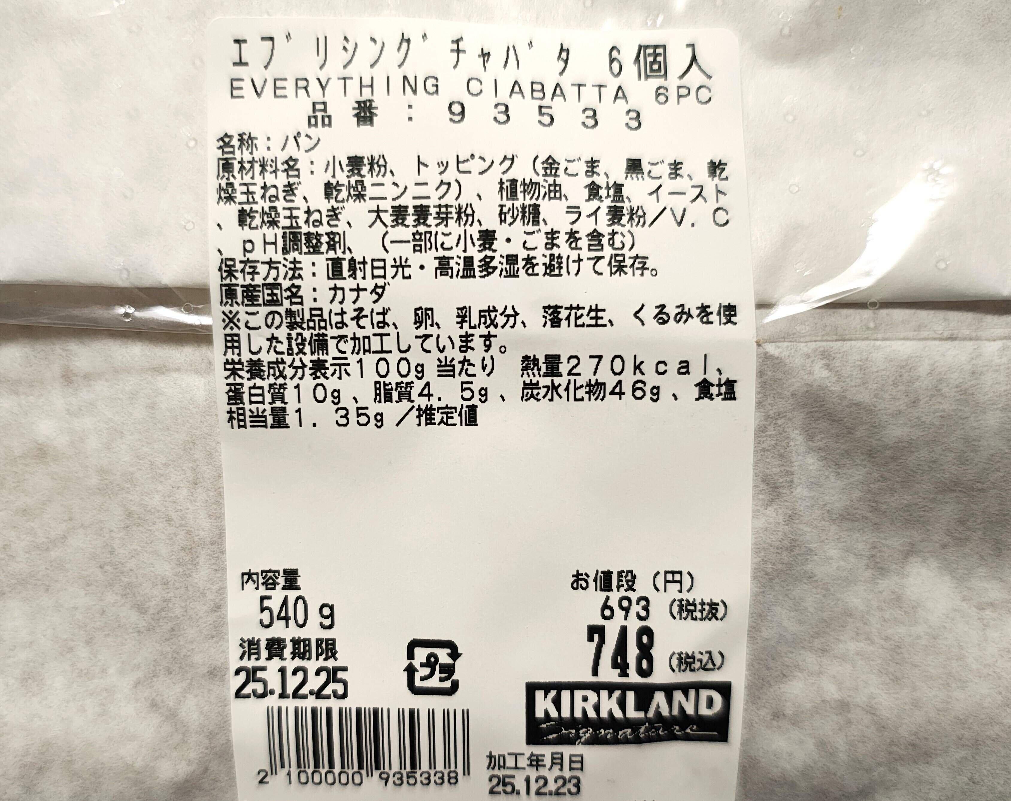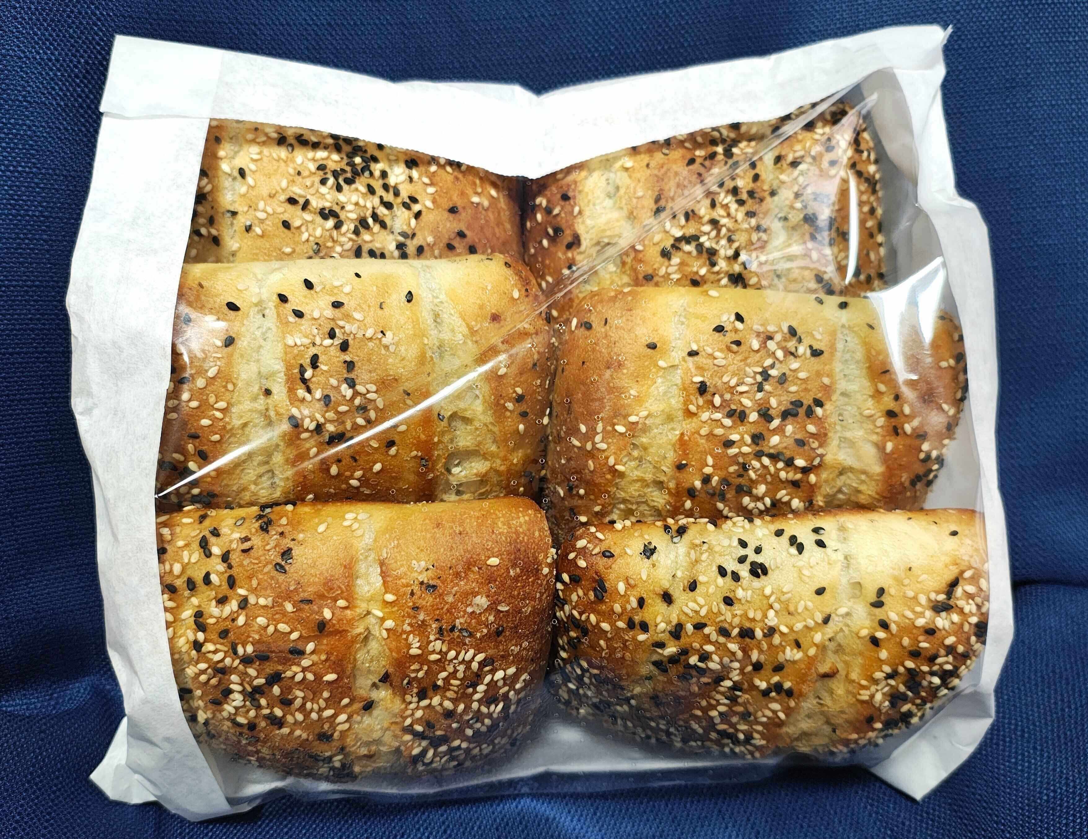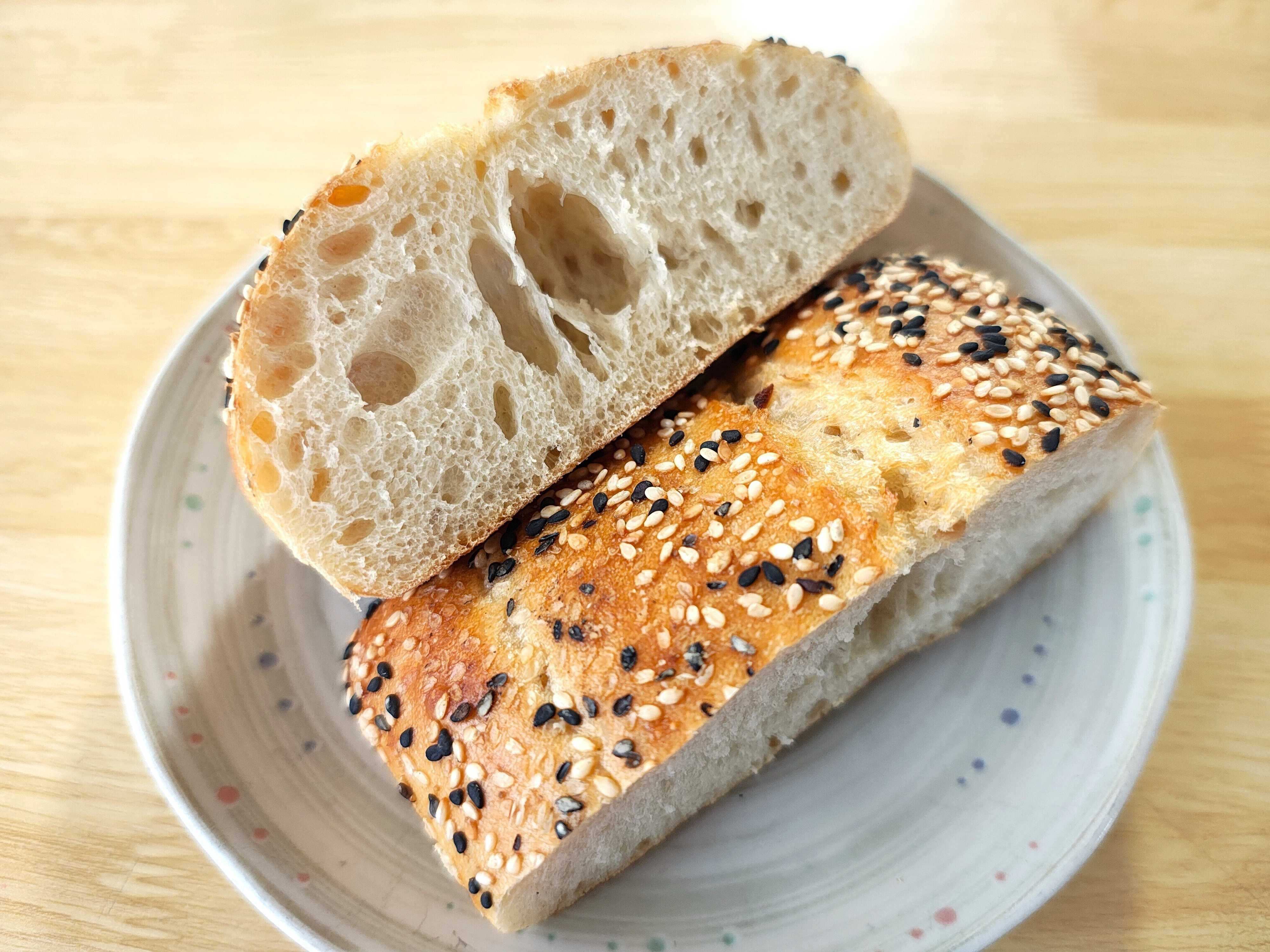 コストコの「エブリシングチャバタ」は、そのシンプルな生地に白ごまと黒ごまが隙間なくトッピングされています。