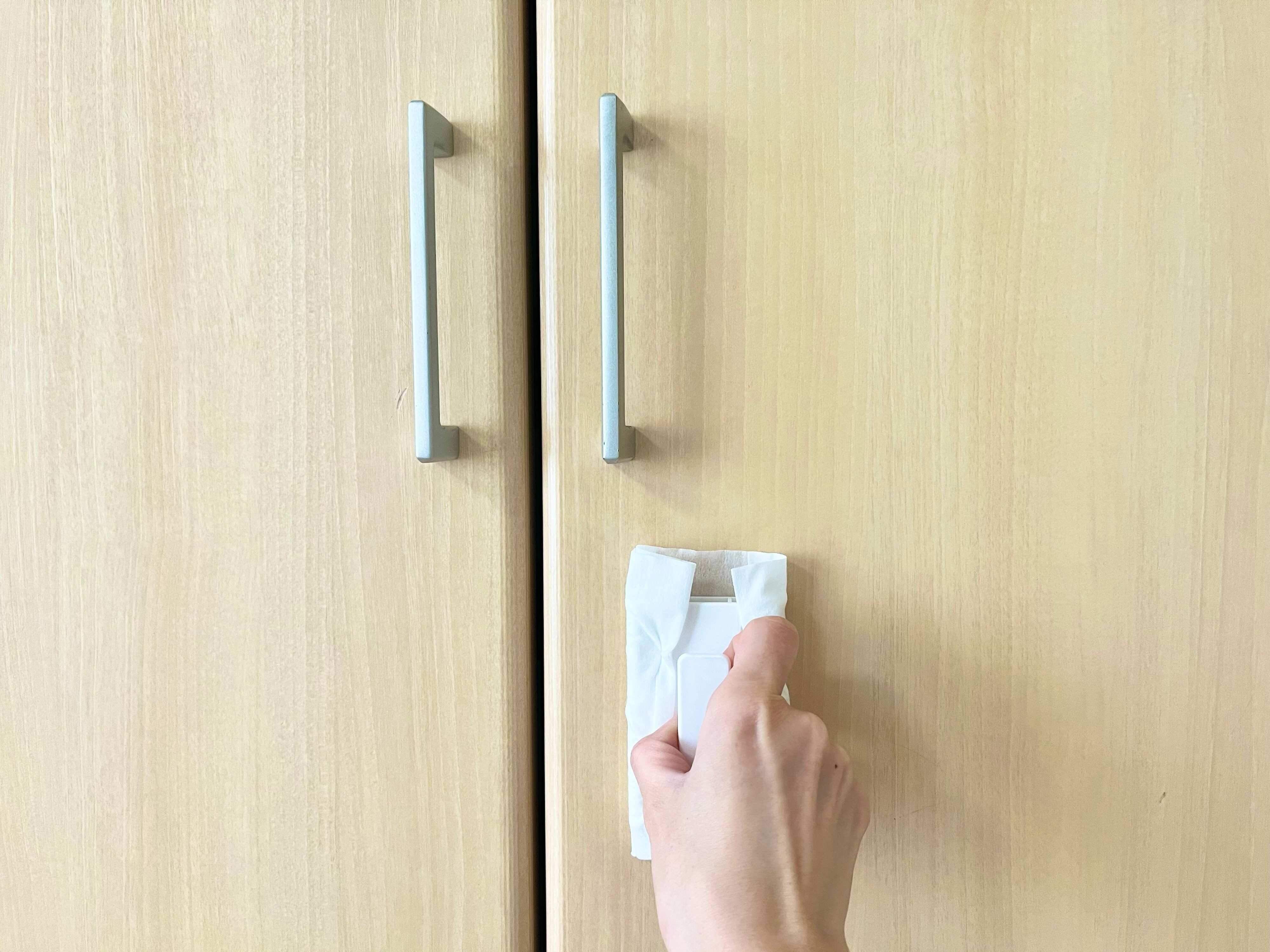 まずは室内ドアの拭き掃除に。取っ手の周りに付きやすい指紋や手垢などの汚れをピンポイントで狙って拭くことができます。手の届きにくいドアの高い位置を拭きたい時も、商品自体が軽いので手が疲れることなく楽に拭くことができます。