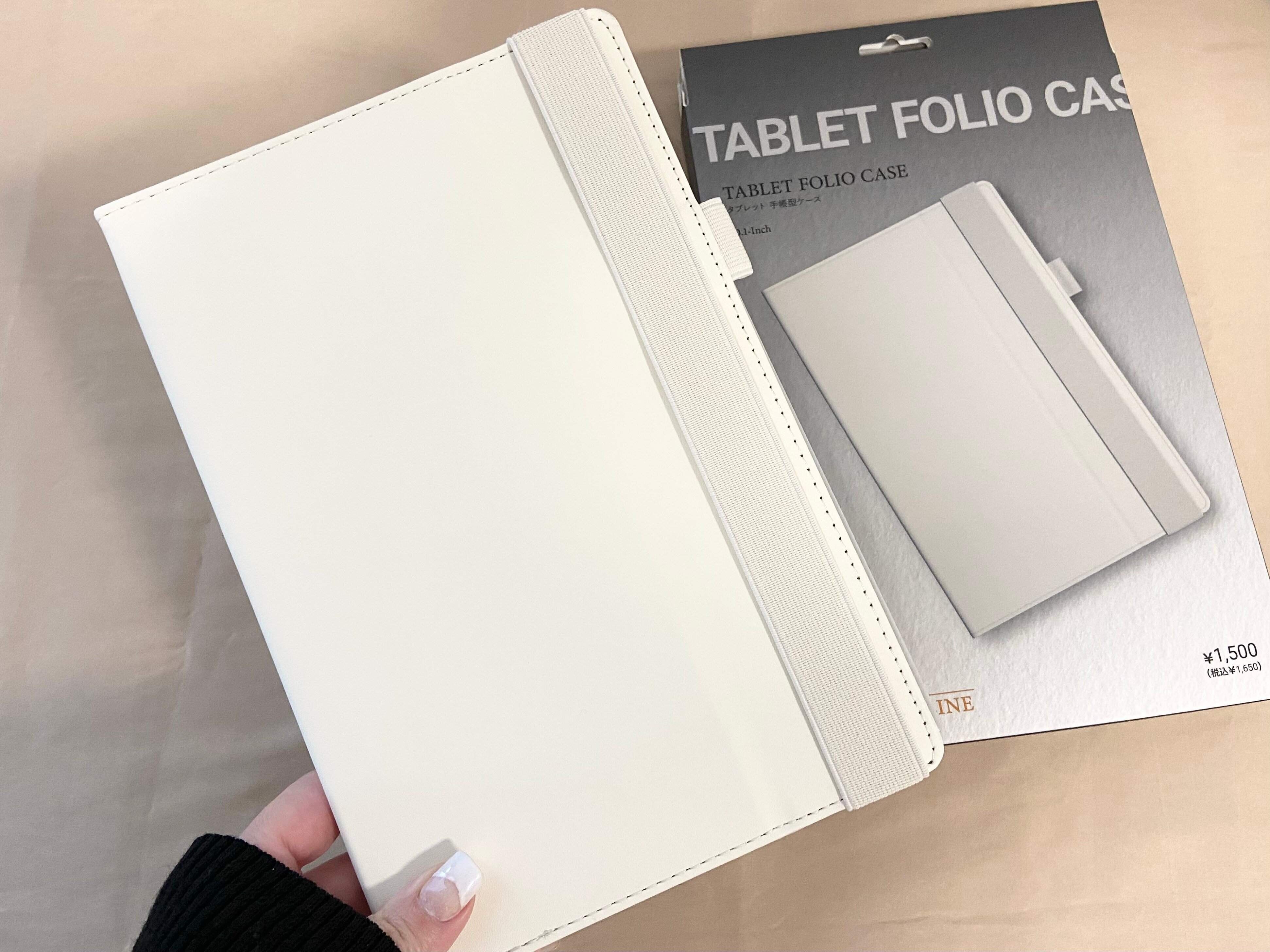「10.1インチタブレット」と一緒に購入したアイテムで、これはマスト!と感じたのは、「タブレット手帳型ケース」(1,650円)。「10.1インチタブレット」専用のタブレットケースで、画面を衝撃や傷から守ってくれますし、タブレットを立てて使用できます。粘着シートでタブレットをしっかり固定し、汚れても水拭きOKで何度でも使えるのもうれしいポイント。カラーはアイボリーとブラックの全2色。