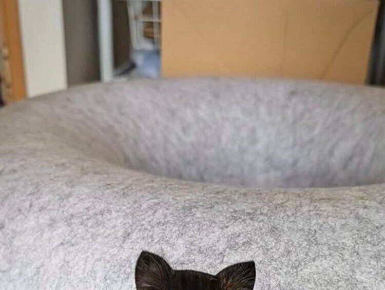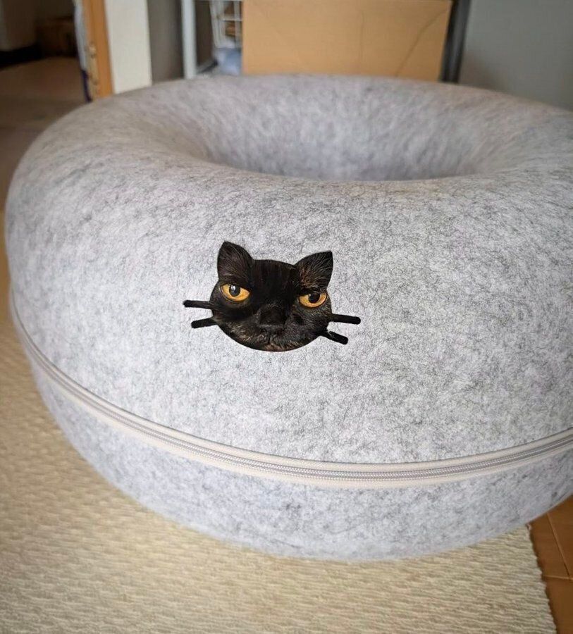そこに写っていたのは、ドーナツ型をしたトンネルおもちゃです。このおもちゃのなかには、愛猫のめいちゃんがいたのだとか。
