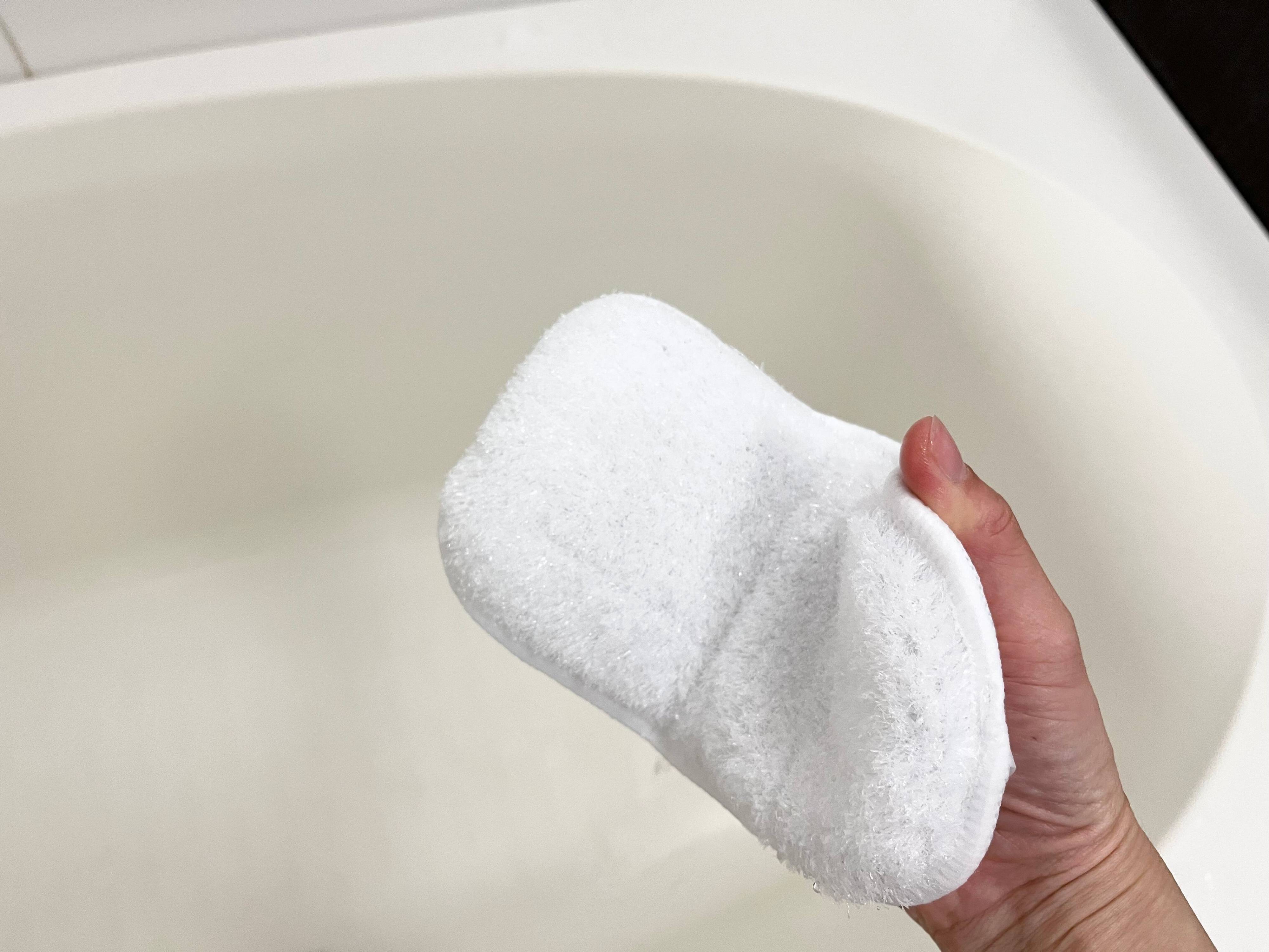 しかも細かい繊維が凸凹やカーブにしっかり入り込み、浴槽の湯垢や石鹸カスなどの汚れを水だけでもスムーズに、しっかり落とせるようにもなっています。頑固な汚れには洗剤が必要にはなりますが、洗剤を付けた場合でも、泡立ちや泡もちもよく、快適に掃除をすることができます。