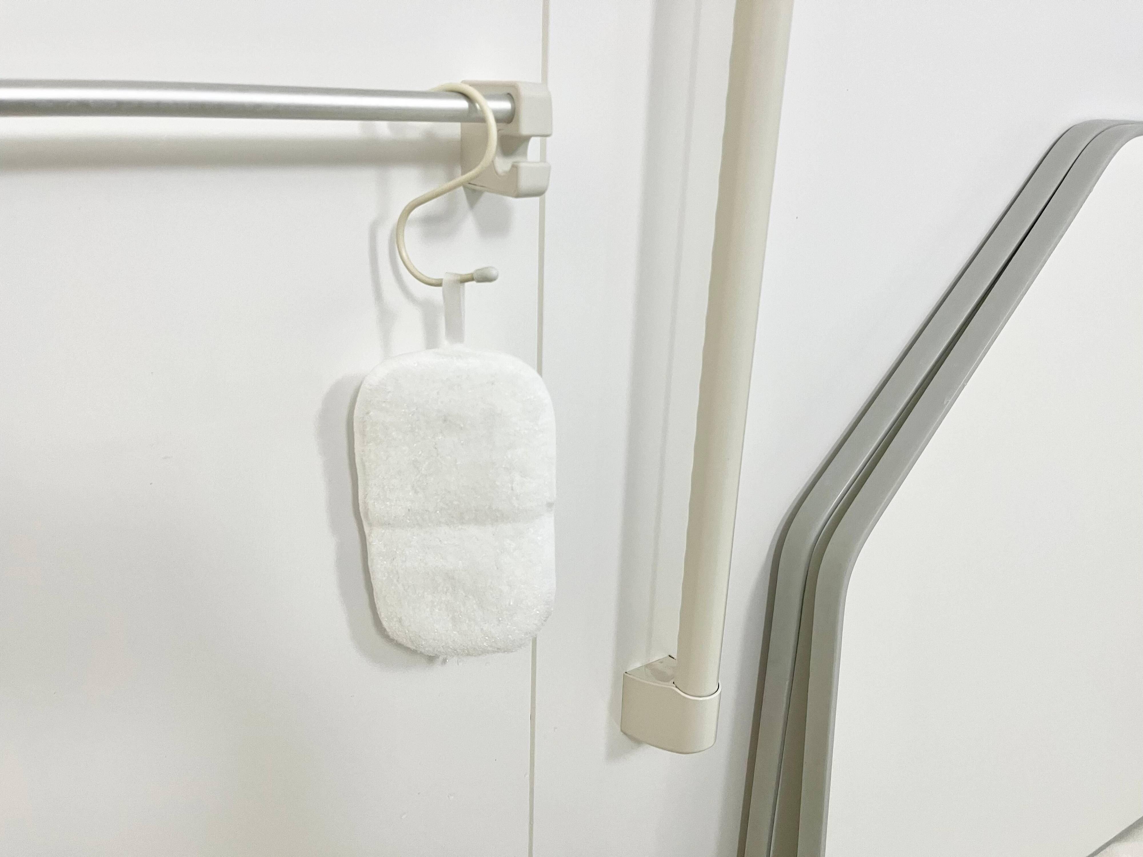 「はさめるスポンジ」は、ループが付いているのも嬉しいポイントの1つ!普通のスポンジは使って洗った後、置き場所に困るし乾かしにくいという問題があります。しかし、こちらの商品ならフックなどにループを引っ掛けて干せば、早く乾かすことができます。しかも吊り下げたまま収納もできるので、使った後も管理がしやすくてとっても便利です。