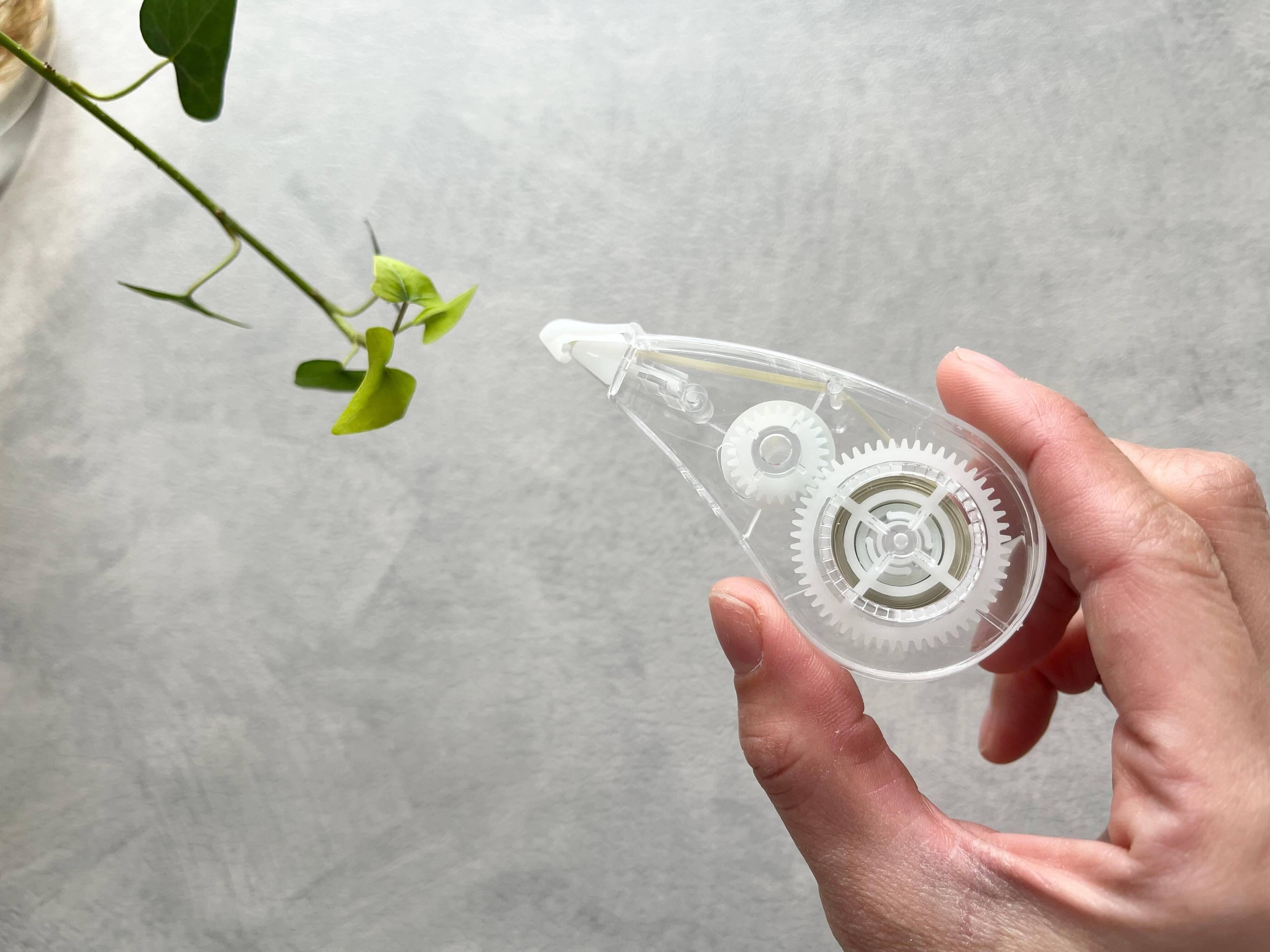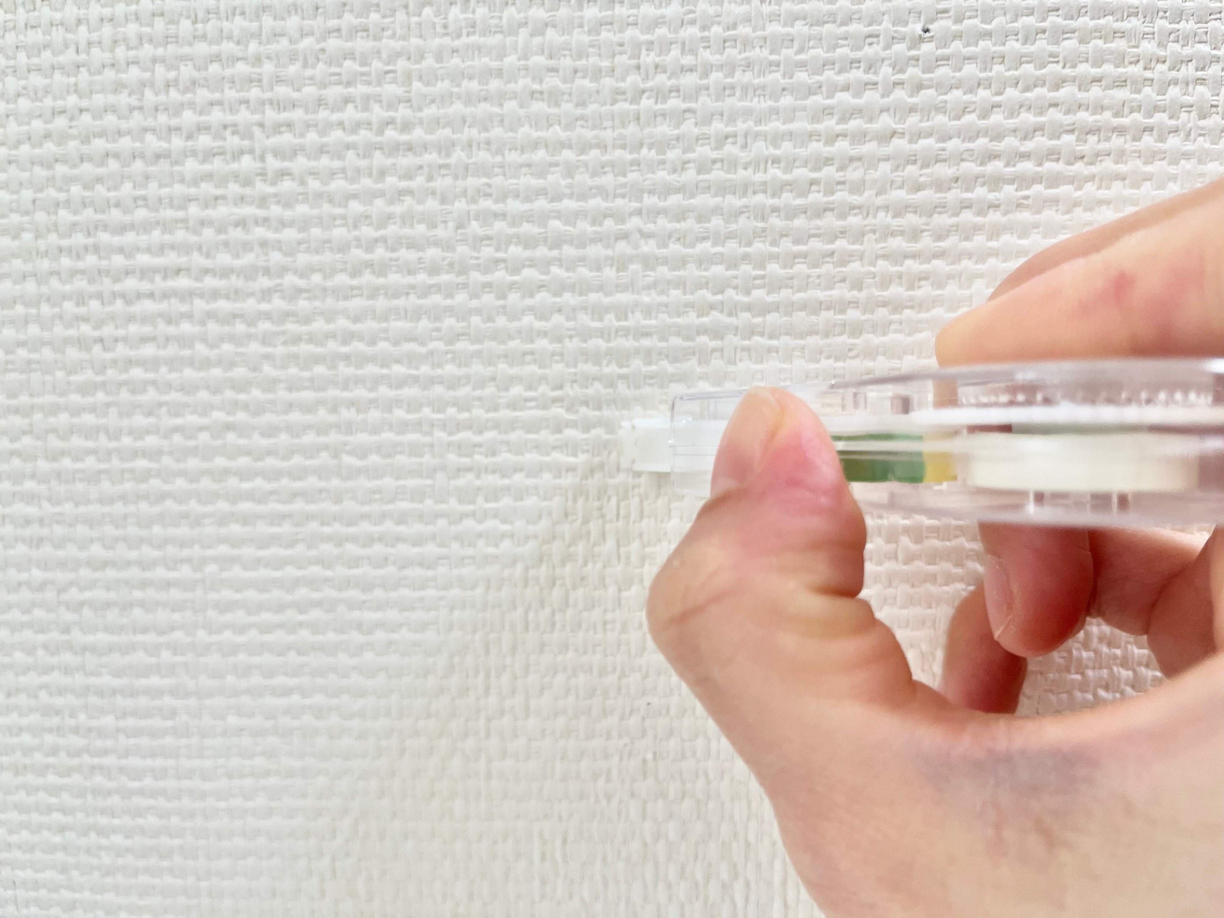 そして保護キャップを外して、本体下部に固定します。あとは普通の修正テープと同じ要領で、壁面に押し当ててピン跡が隠れるように横にサッと引きます。