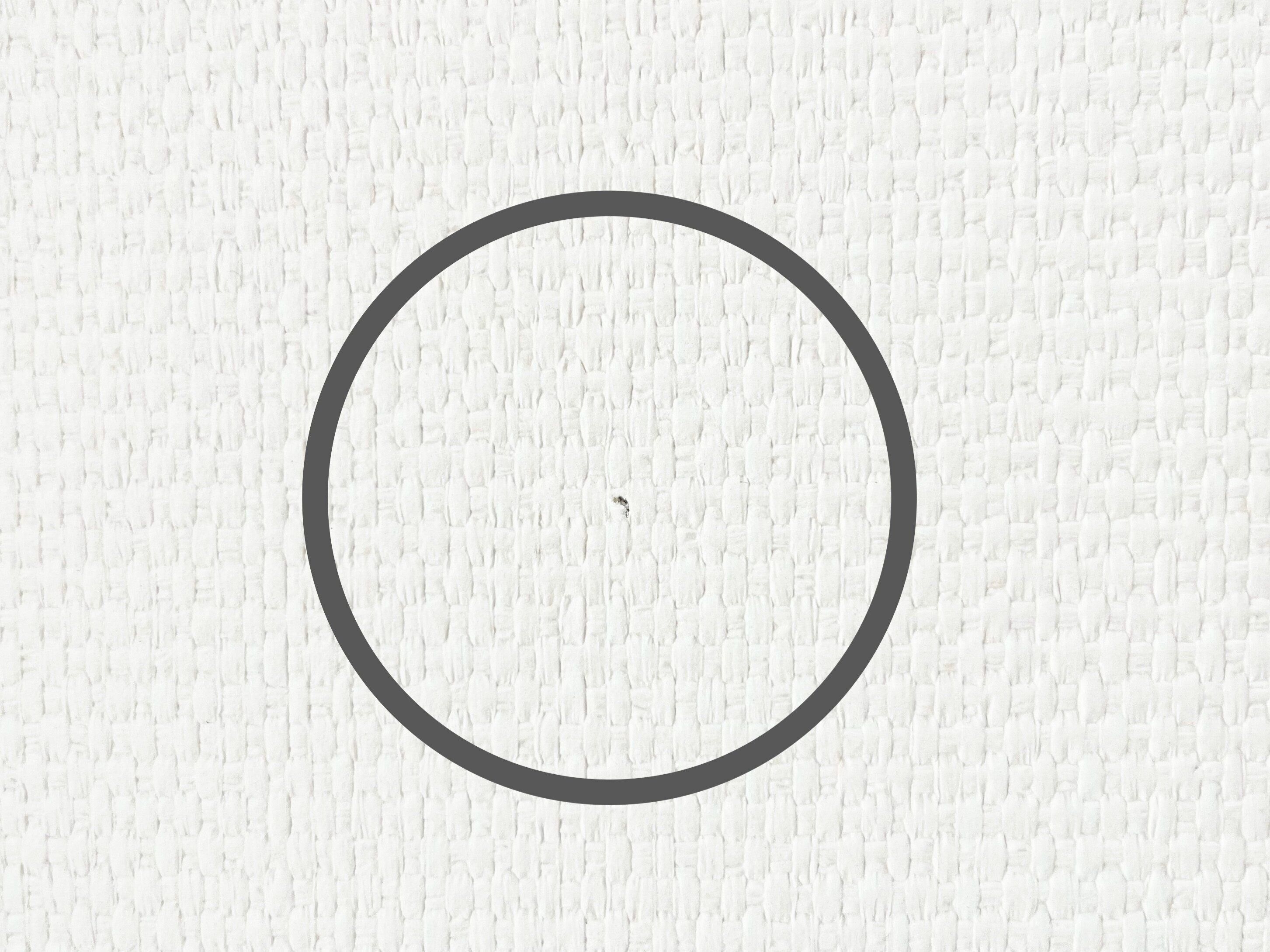 あとは壁に転写したテープを軽く指で押さえて壁紙と密着させたら完成です。ピン跡を埋めるというよりもテープで隠すといった感じですが、普通の修正テープよりも少し厚みがあるのでしっかり隠すことができます。あっという間に近くで見てもピン跡がわからないぐらいキレイに補修することができました。