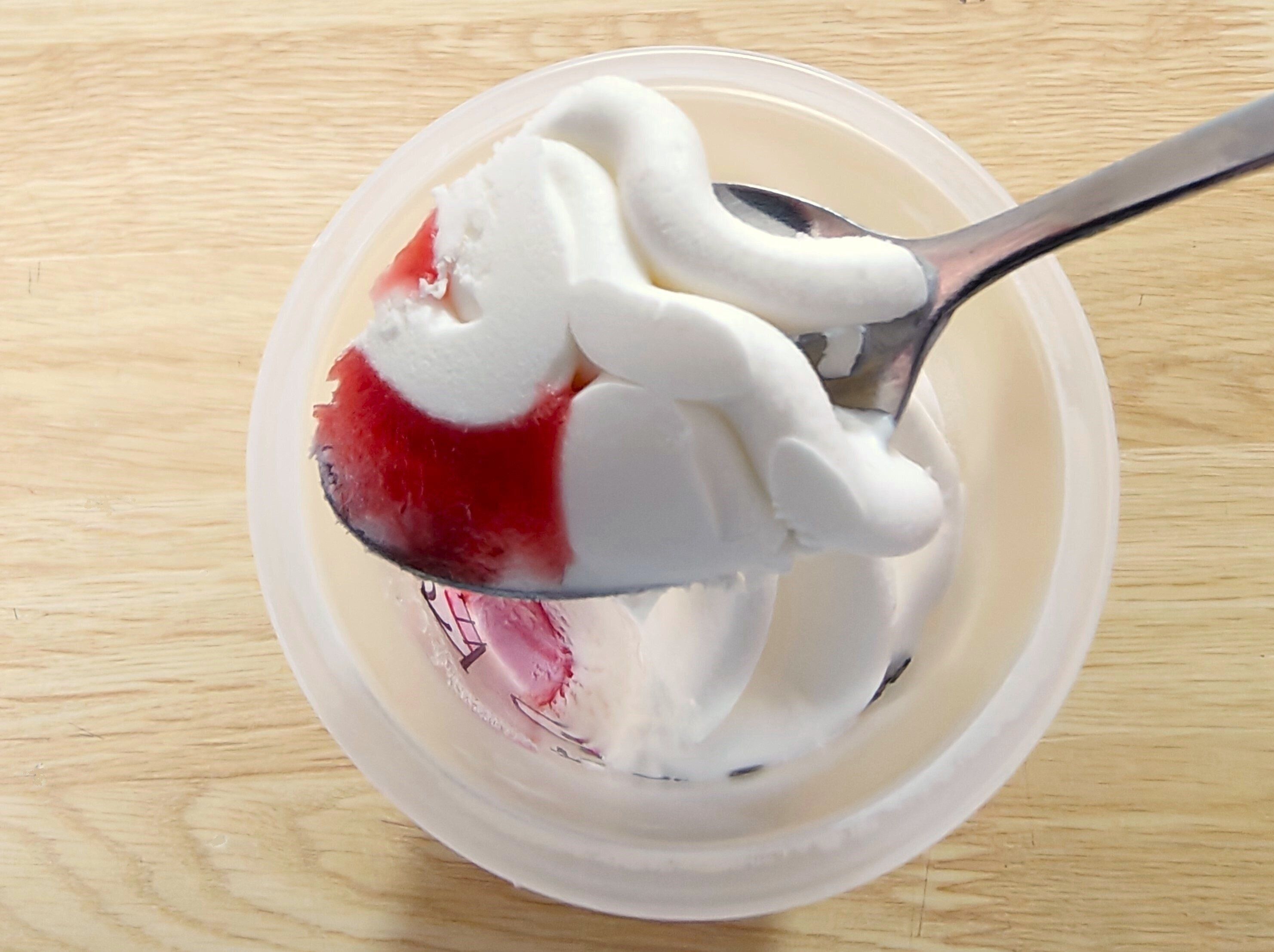 いちご果肉ソースとミルクアイスを組み合わせてみると、ミルキーで甘酸っぱい味わいを楽しめますが、いちご果肉ソースといちごアイスを組み合わせると、いちご感の強いアイスを楽しめます。それぞれ単体で食べたり、いちご果肉ソースと組み合わせたりして飽きずに最後まで食べられちゃいました。