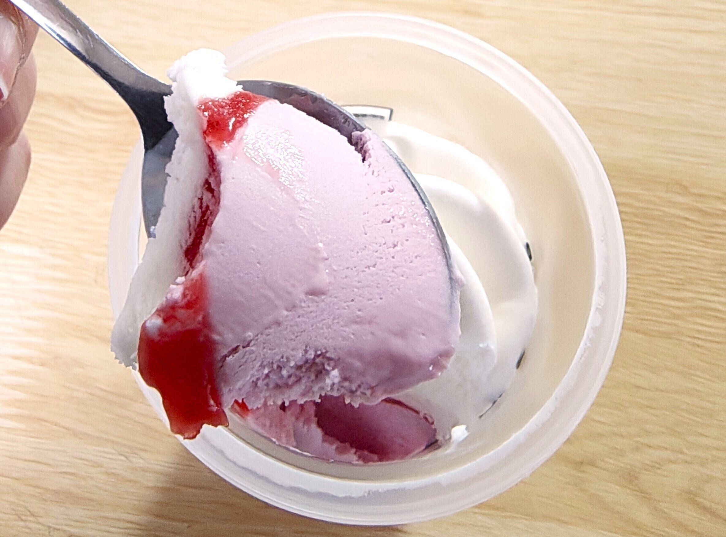 ミルクアイスといちご果肉ソース、いちごアイスの3層構造!