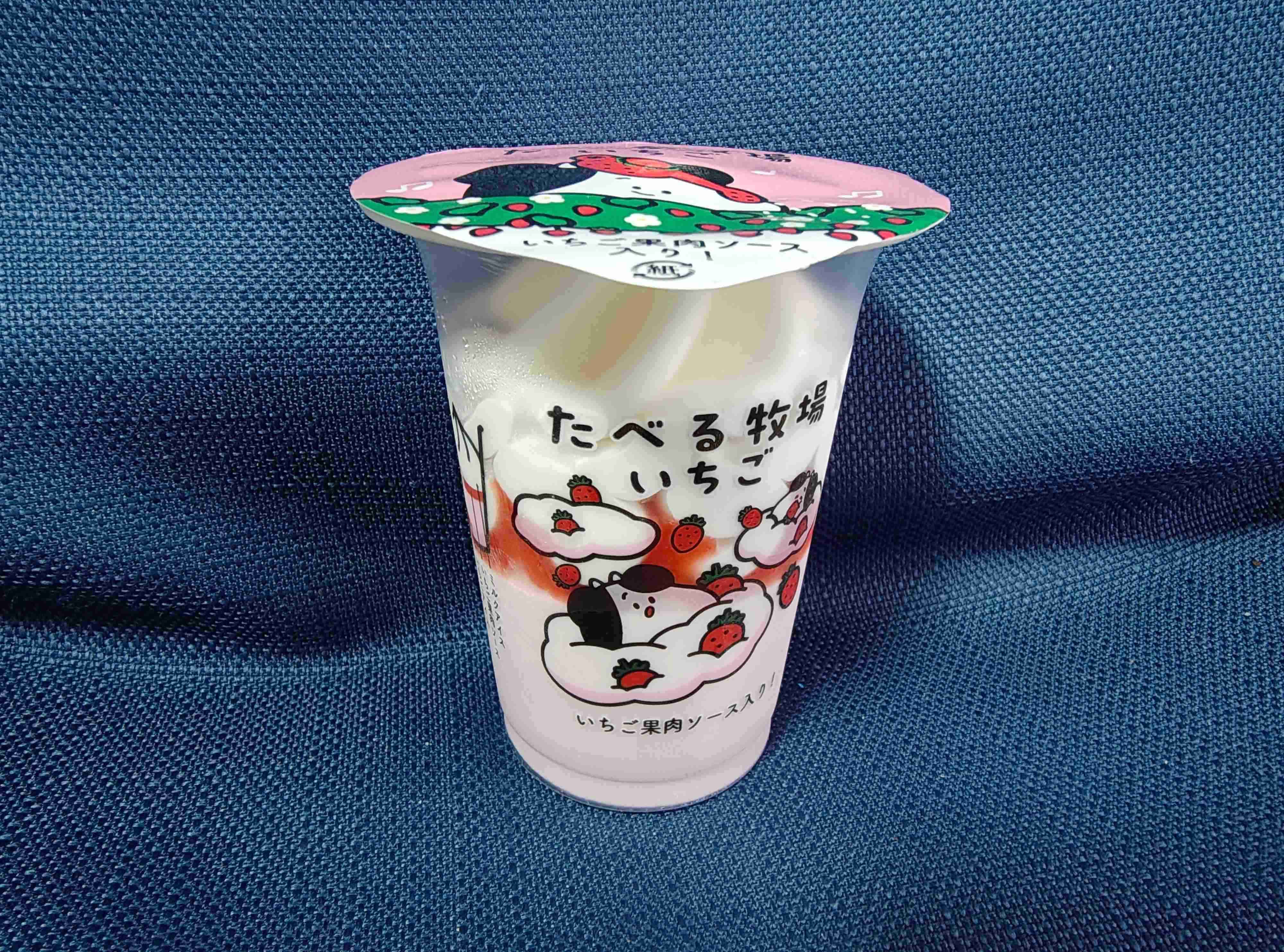 「たべる牧場」シリーズでおなじみの牛といちごが描かれたパッケージ。ちなみにフタの絵柄には、3種類あるようです。売り場でチェックしてみてくださいね。