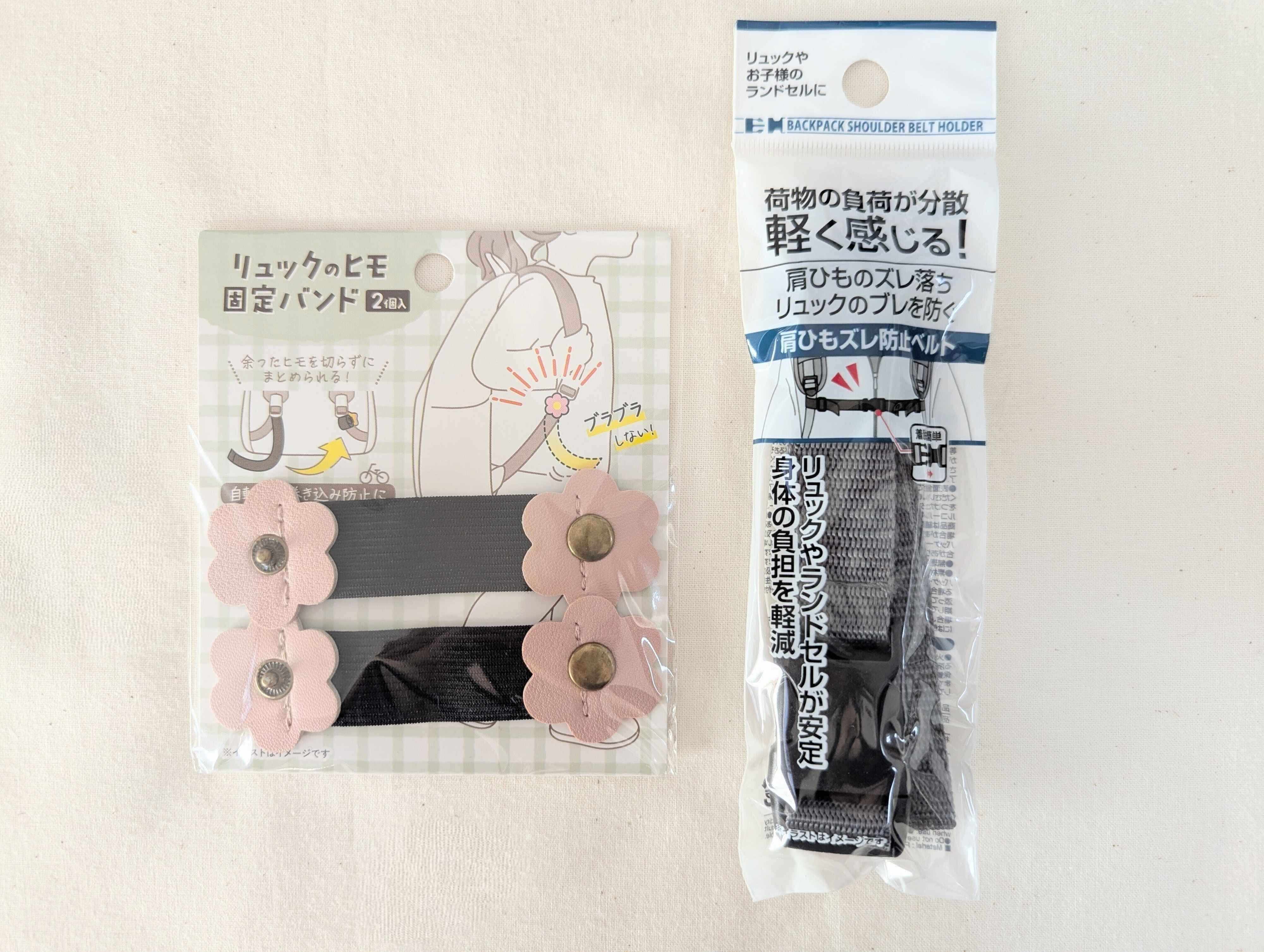 【セリア】子ども用リュックのヒモ固定バンド(2個入)/110円