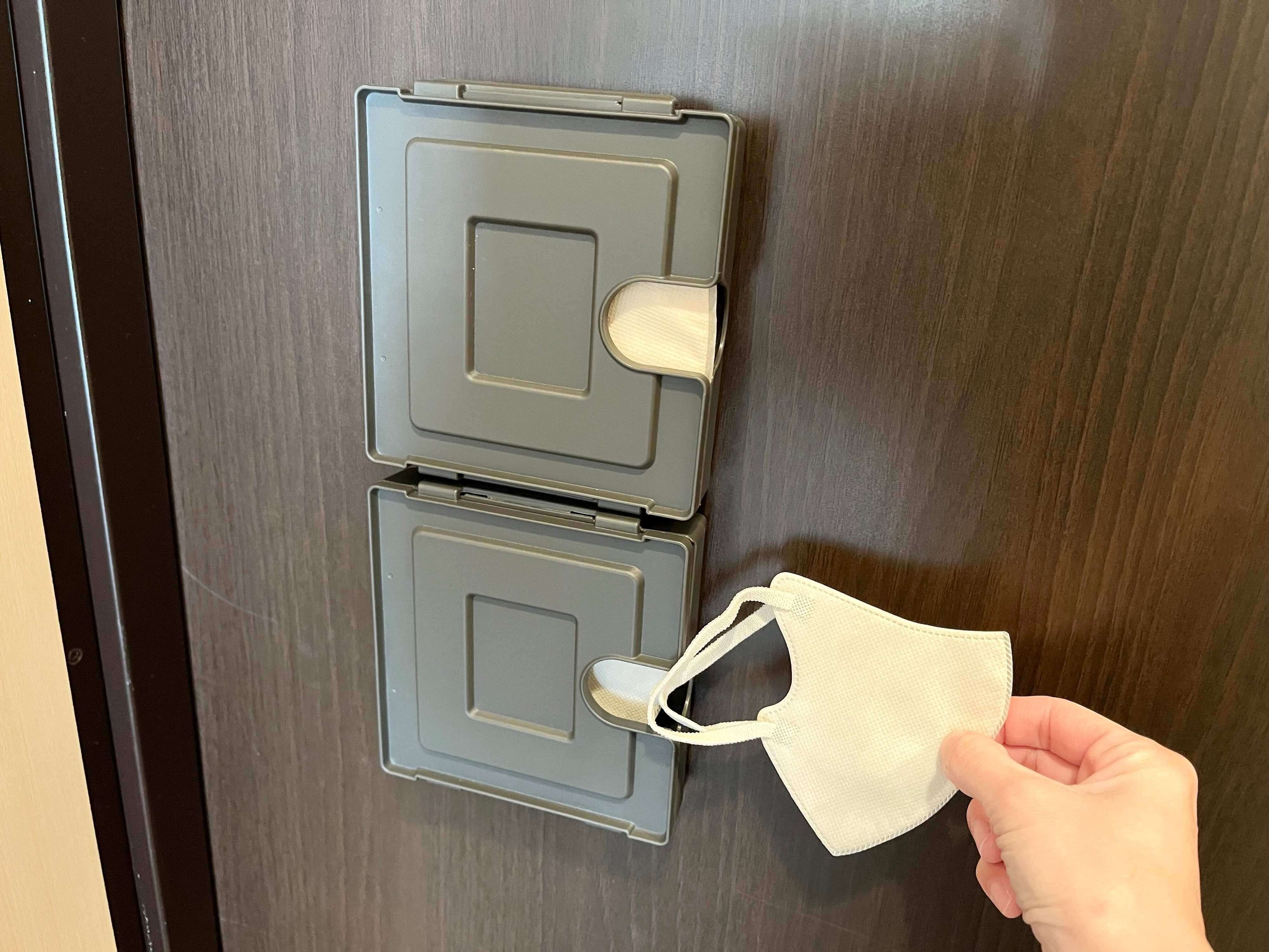 もちろん玄関のドアなら靴を履いてしまった後にマスクを忘れたことに気づいても、ノンストレスでサッとマスクを取り出すことが可能。靴を脱いでマスクを部屋に取りに戻るというムダな時間もかからなくなります。