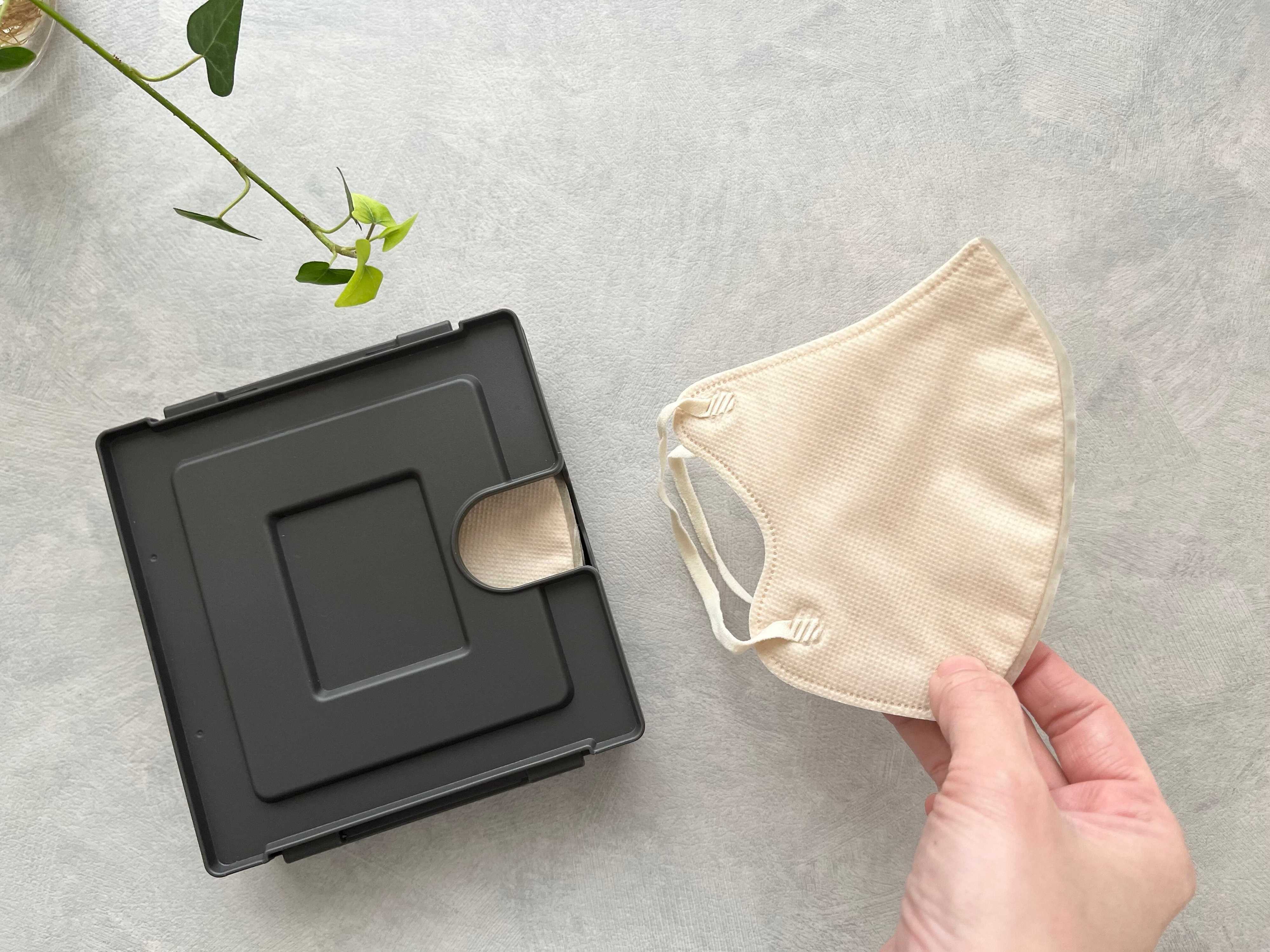 マスクが折れることなくキレイに収納でき、ケースに入れることで埃もつきにくい。そして何より1枚ずつスムーズにマスクを取り出すことができます。