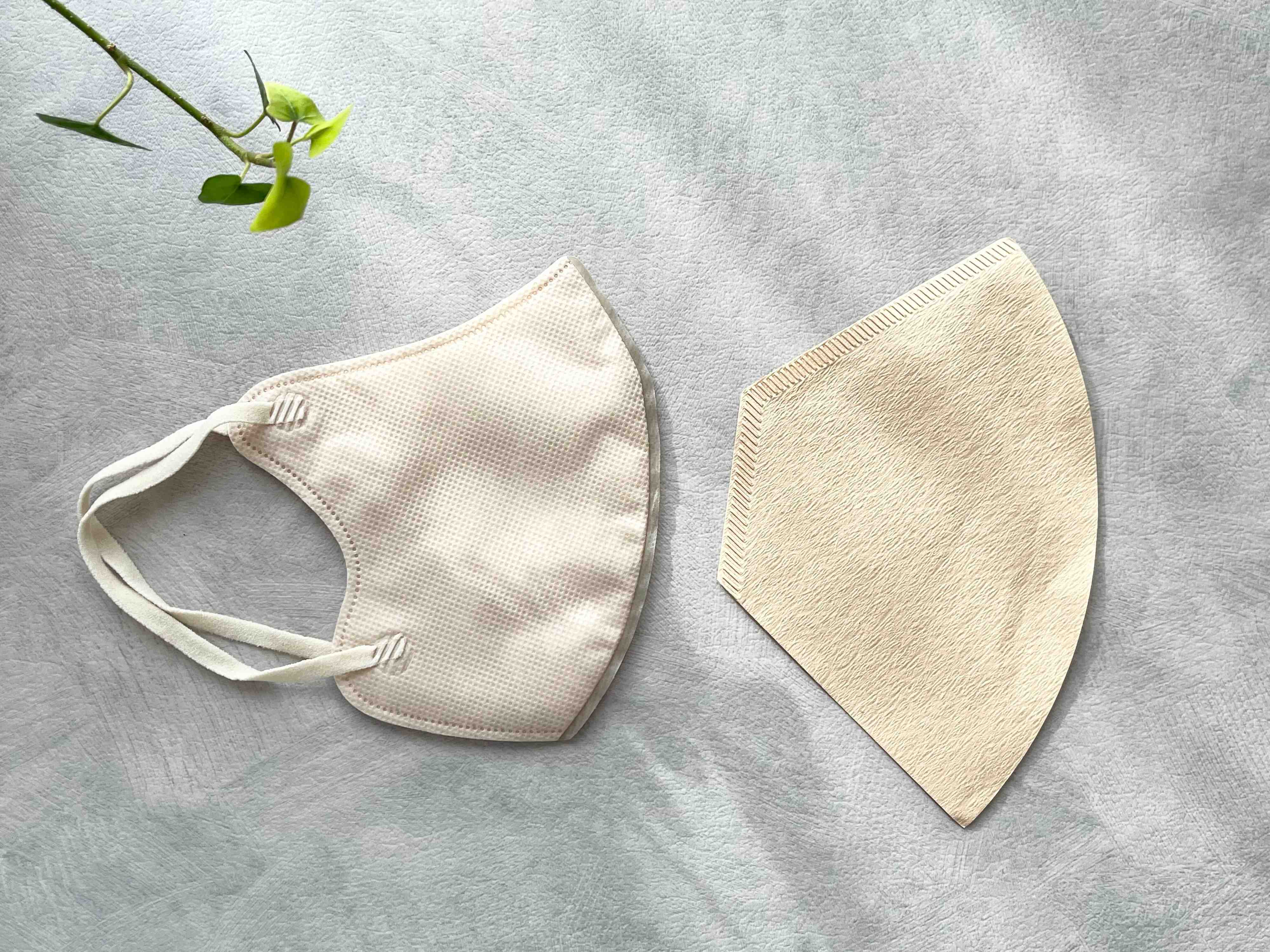 まず1つ目は、使いやすさやサイズ感がちょうどいいというところ。コーヒーフィルターと立体型のマスクって意外な組み合わせなんですが、じつは並べてみると大きさがほぼ同じ。