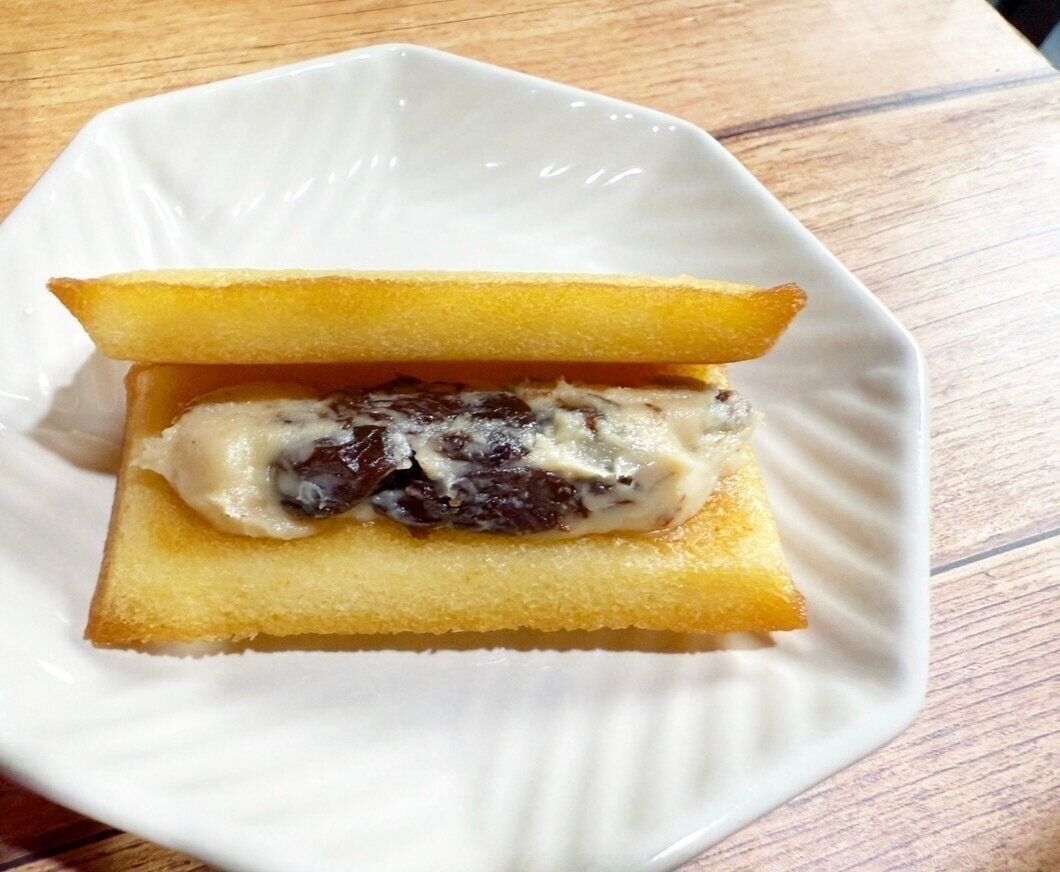 - フィナンシェにラムレーズン入りのクリームをサンドした、贅沢な大人のケーキ